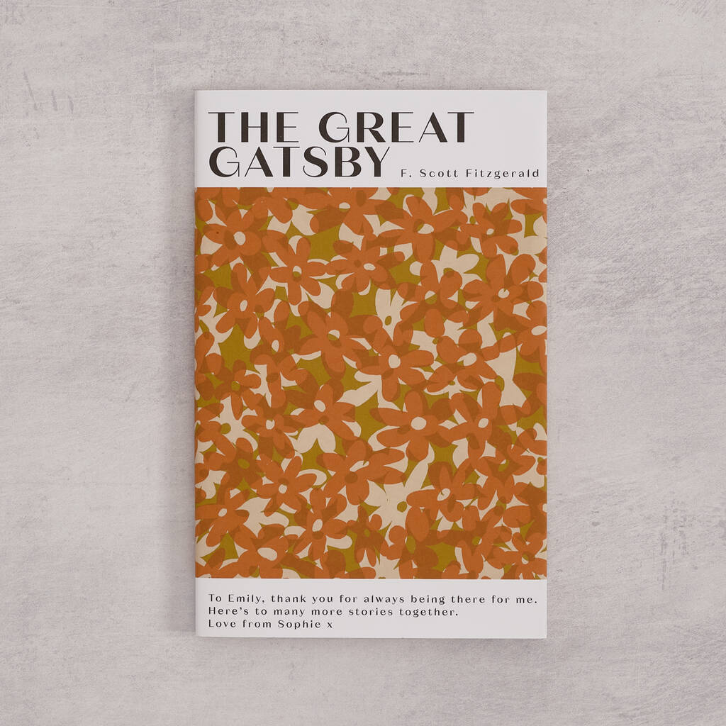 This personalised edition of The Great Gatsby by F. Scott Fitzgerald brings new warmth to a classic tale of love and illusion. Your custom message is printed on the front cover, making this literary masterpiece uniquely personal. Designed by Bookishly, the soft orange daisy-patterned cover nods to Fitzgerald’s unforgettable heroine while keeping the design timeless. A meaningful gift for readers, romantics, or anyone drawn to the quiet beauty of classic fiction.