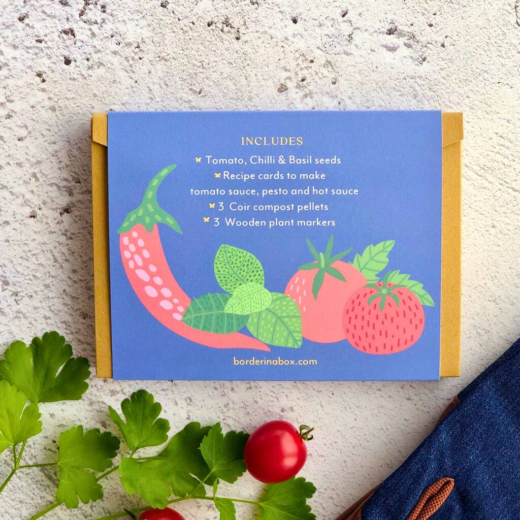 Grow your own pizza from seed with tomato, basil and chilli seeds and recipe cards. Gift boxed and ideal for Christmas, Birthday and Father's Day