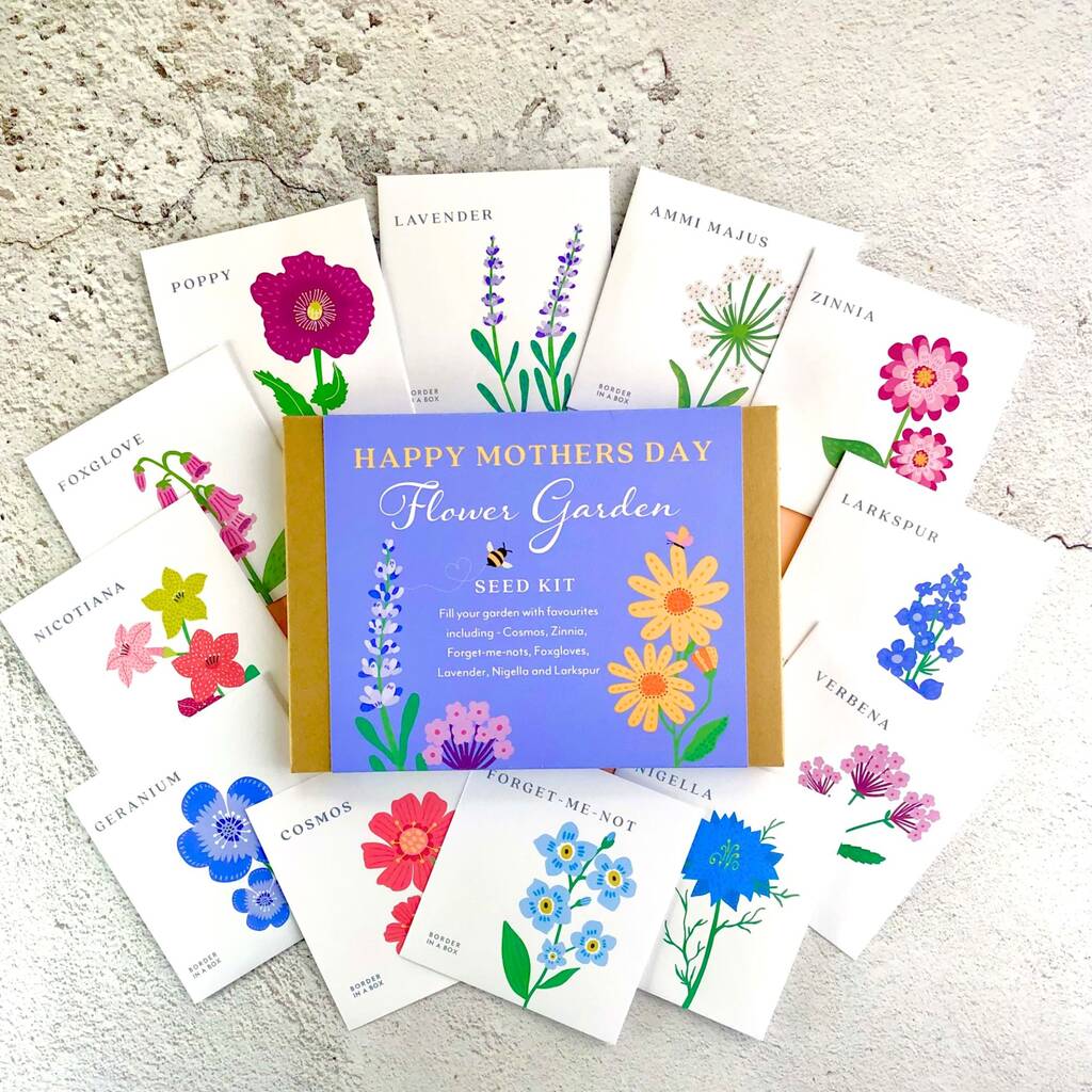 Beautifully curated flower garden seed kit for Mum, featuring twelve easy‑to‑grow varieties and optional personalisation. A thoughtful, long‑lasting gift for Mother’s Day or birthdays.
