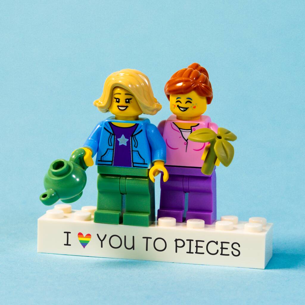 Personalised Lego® Minifig Couple Gift With Rainbow Heart: Inclusive Valentines Keepsake For Lgbtq+ Couples