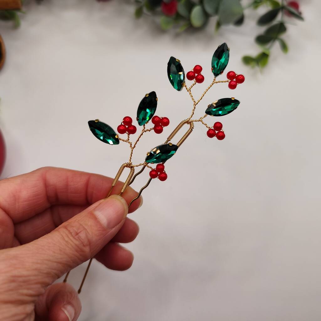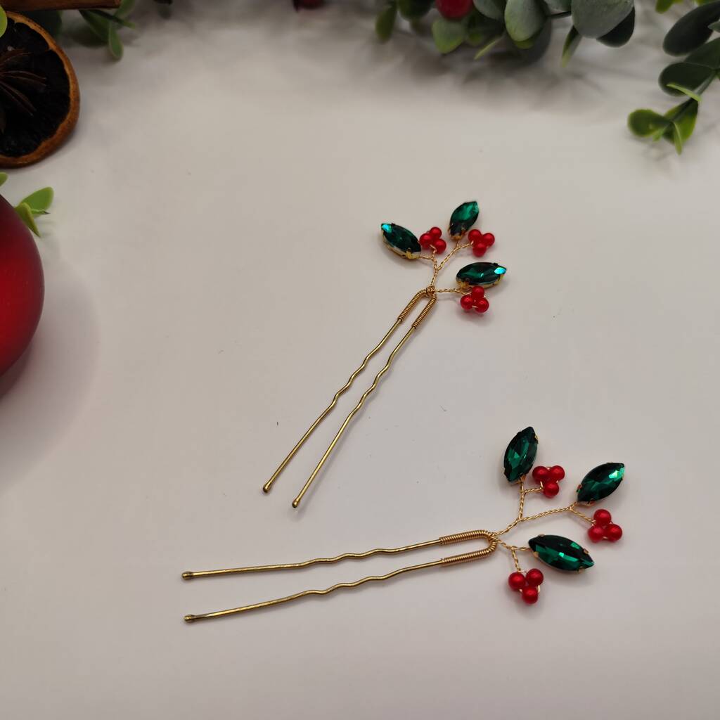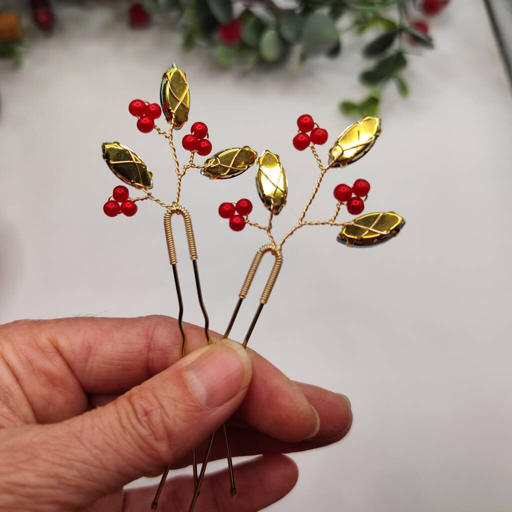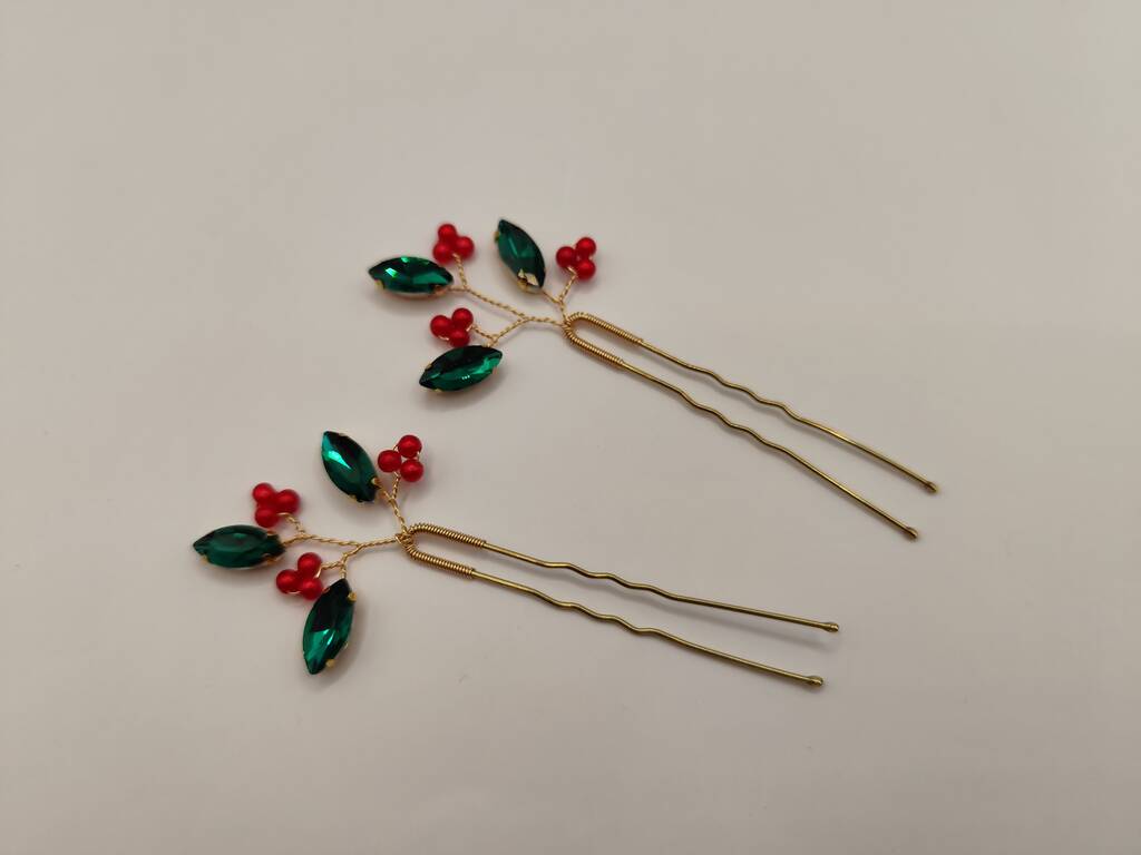 Handmade Festive Hair Pins Set Of Two