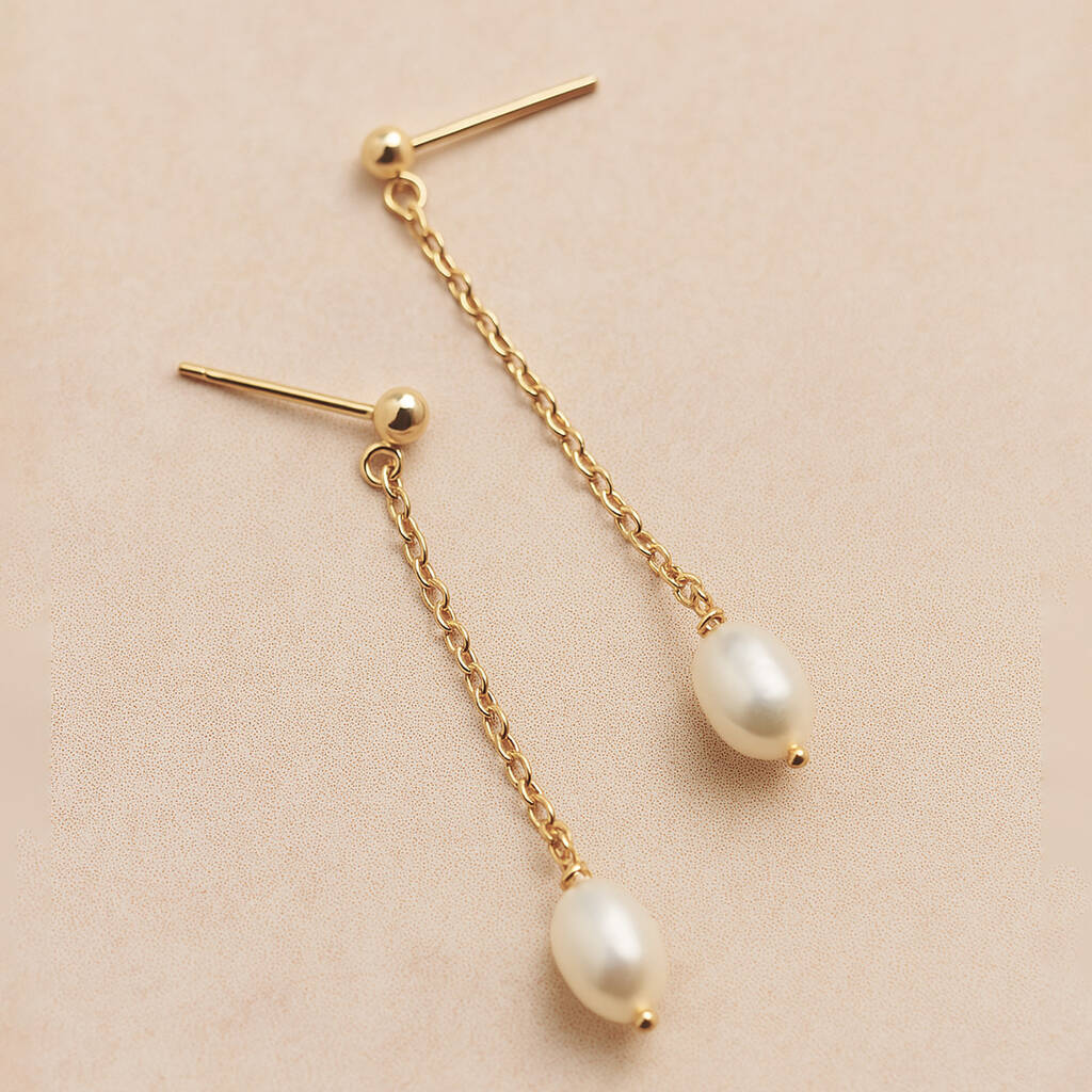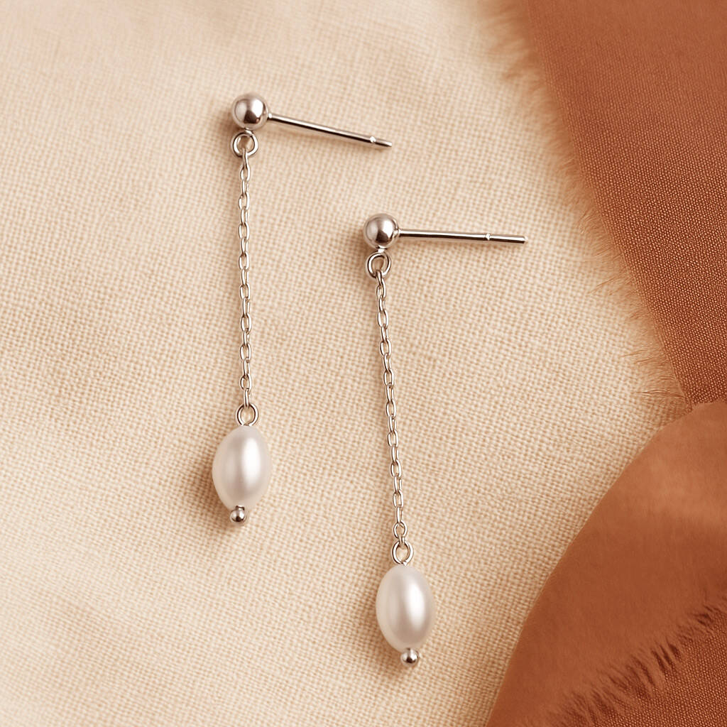 Delicate Chain Pearl Earrings – Minimal Handmade Wedding Jewellery