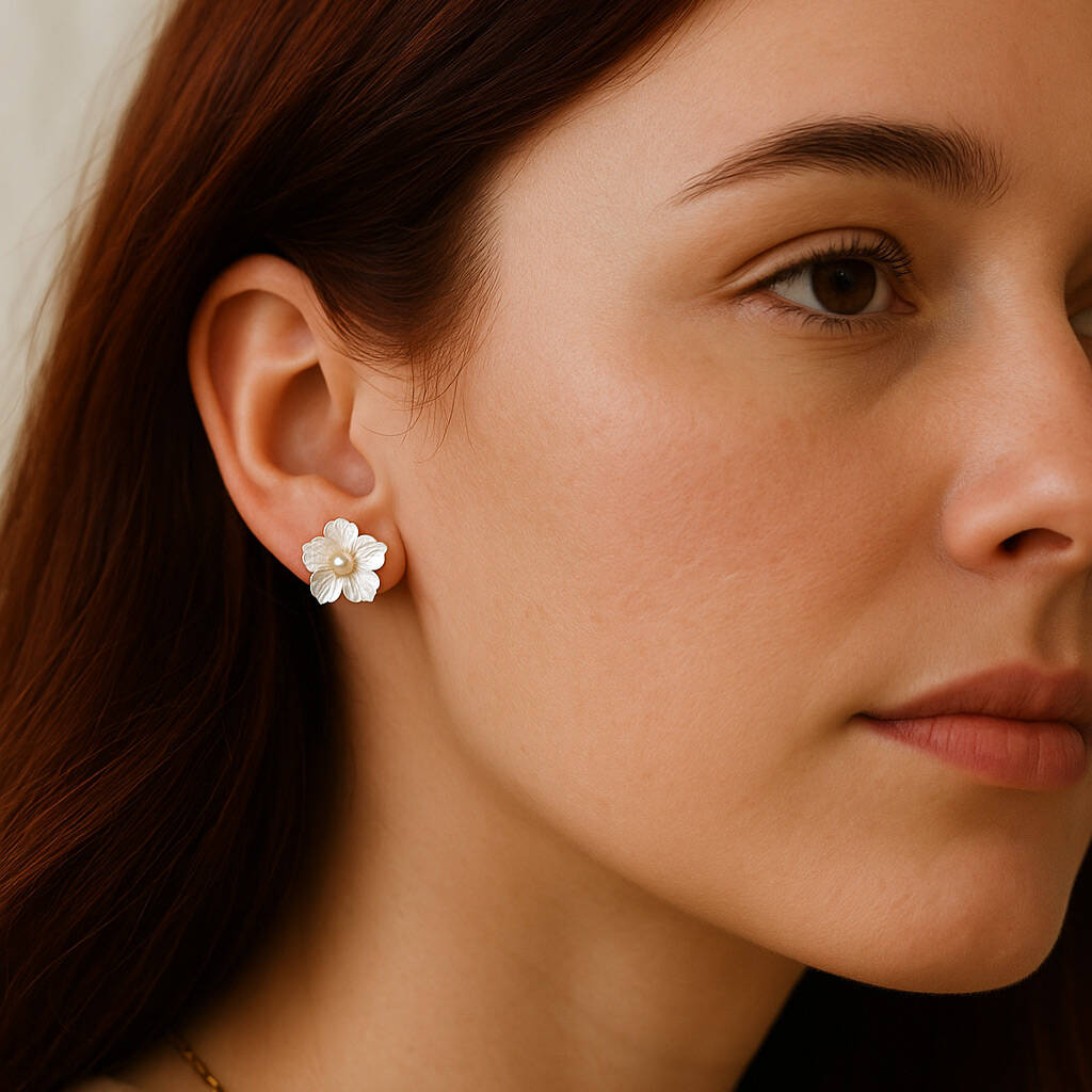 Mother Of Pearl Flower Bridal Earrings – Handmade In The UK