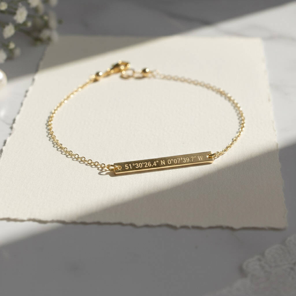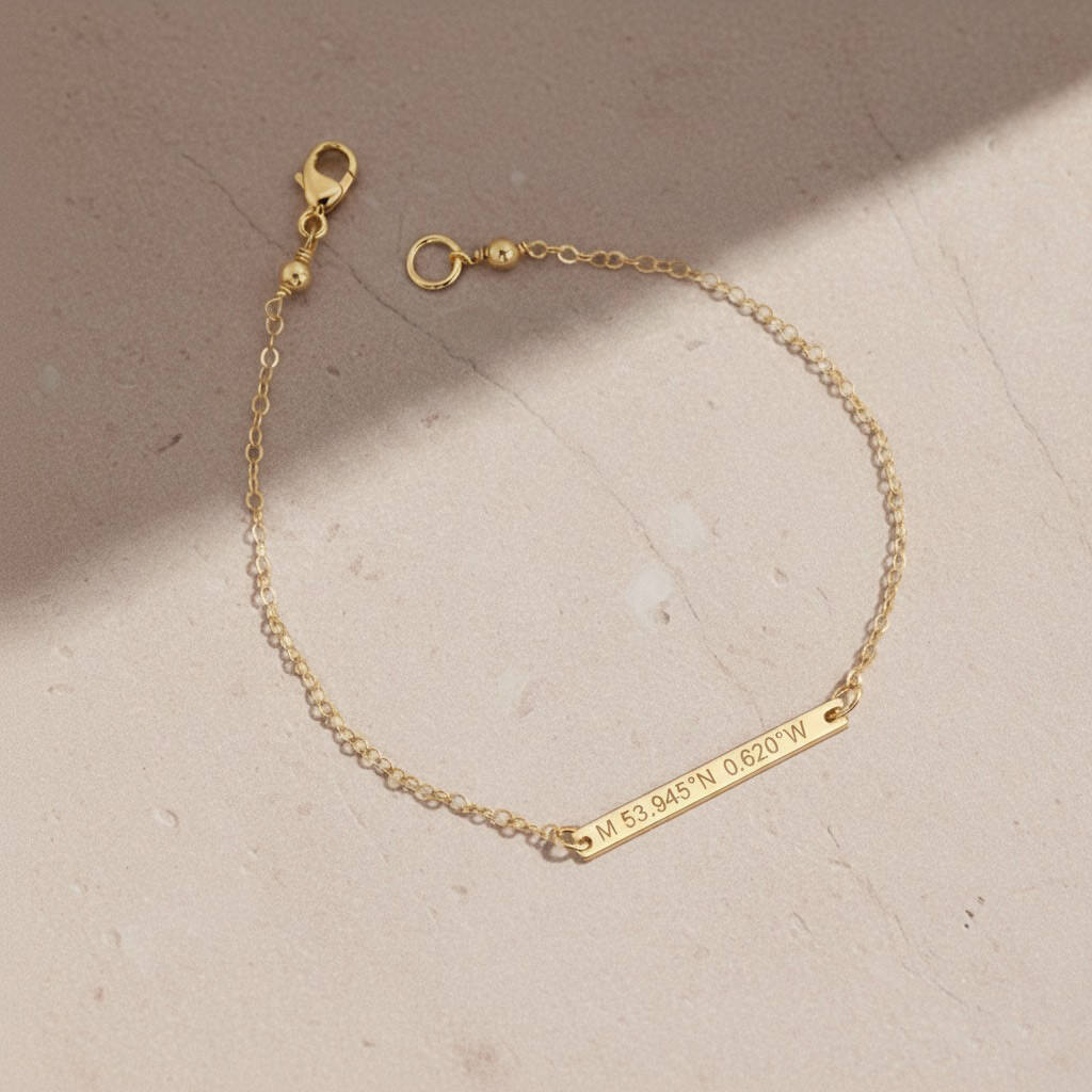Personalised Bar 'Coordinates' Bracelet Custom Engraved Latitude Longitude Gps Location Gift For Him Her Anniversary