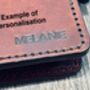 Personalisation will be stamped in the bottom right corner. Completely handmade and hand stitched from beautiful vegetable tanned top grain Lyveden distressed leather. Constructed from multiple pieces of leather and carefully glued, sanded, stitched and the edges dyed to give a premium finish. Ideal gift for him or her.