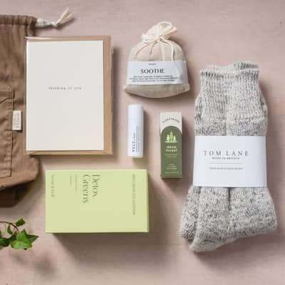 Each bundle blends our own creations with products from independent makers we admire, chosen for their quality, craftsmanship and sense of calm ritual. From soothing bath salts and linen eye pillows to artisan teas, notebooks and candles, every element is selected to create a meaningful experience for the person receiving it.