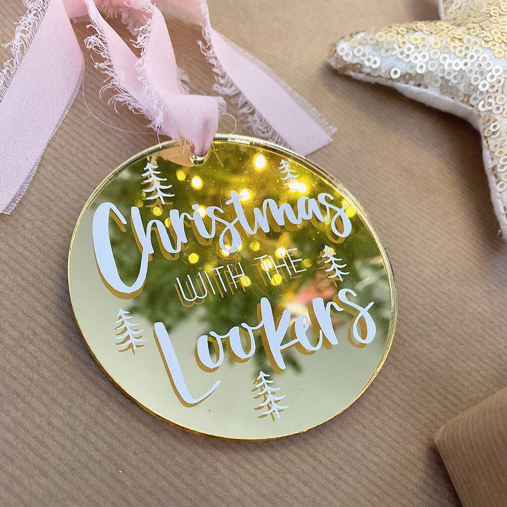 Add a touch of Christmas magic to your home with these luxury personalised family name tree decorations. Beautifully crafted from quality acrylic and finished with delicate script and christmas trees, each decoration can be personalised with the name of your choice—perfect for creating special familiy memories.