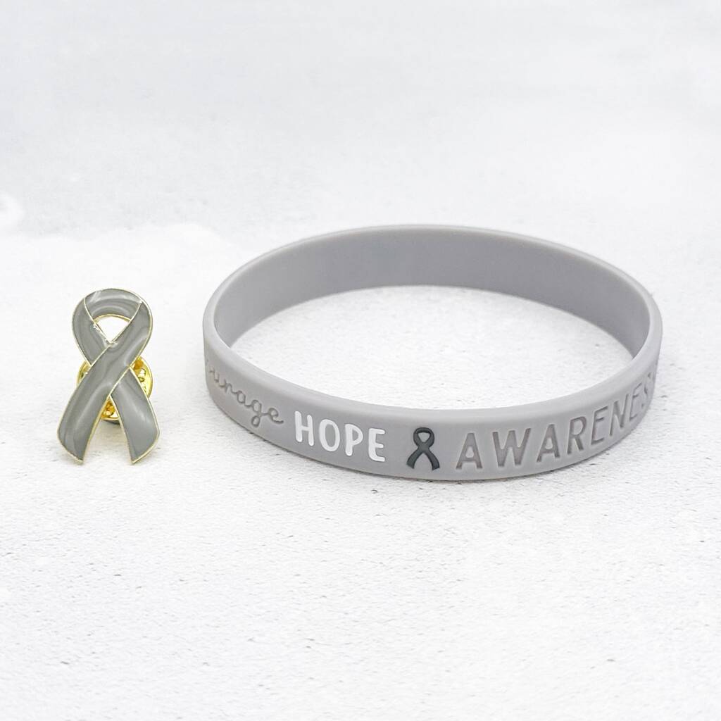 Grey Awareness Ribbon Bracelet Wristband