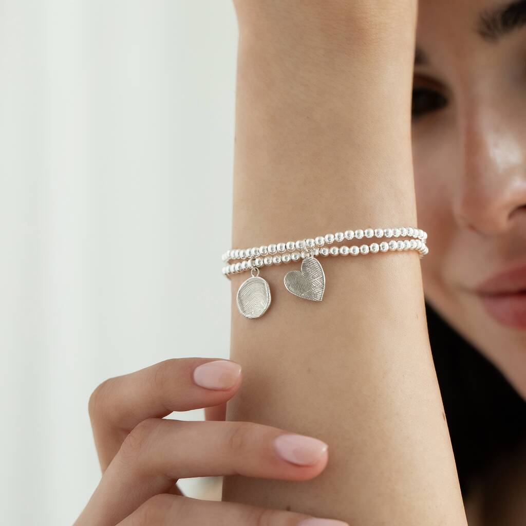 Personalised Fold Fingerprint Charm Beaded Bracelet