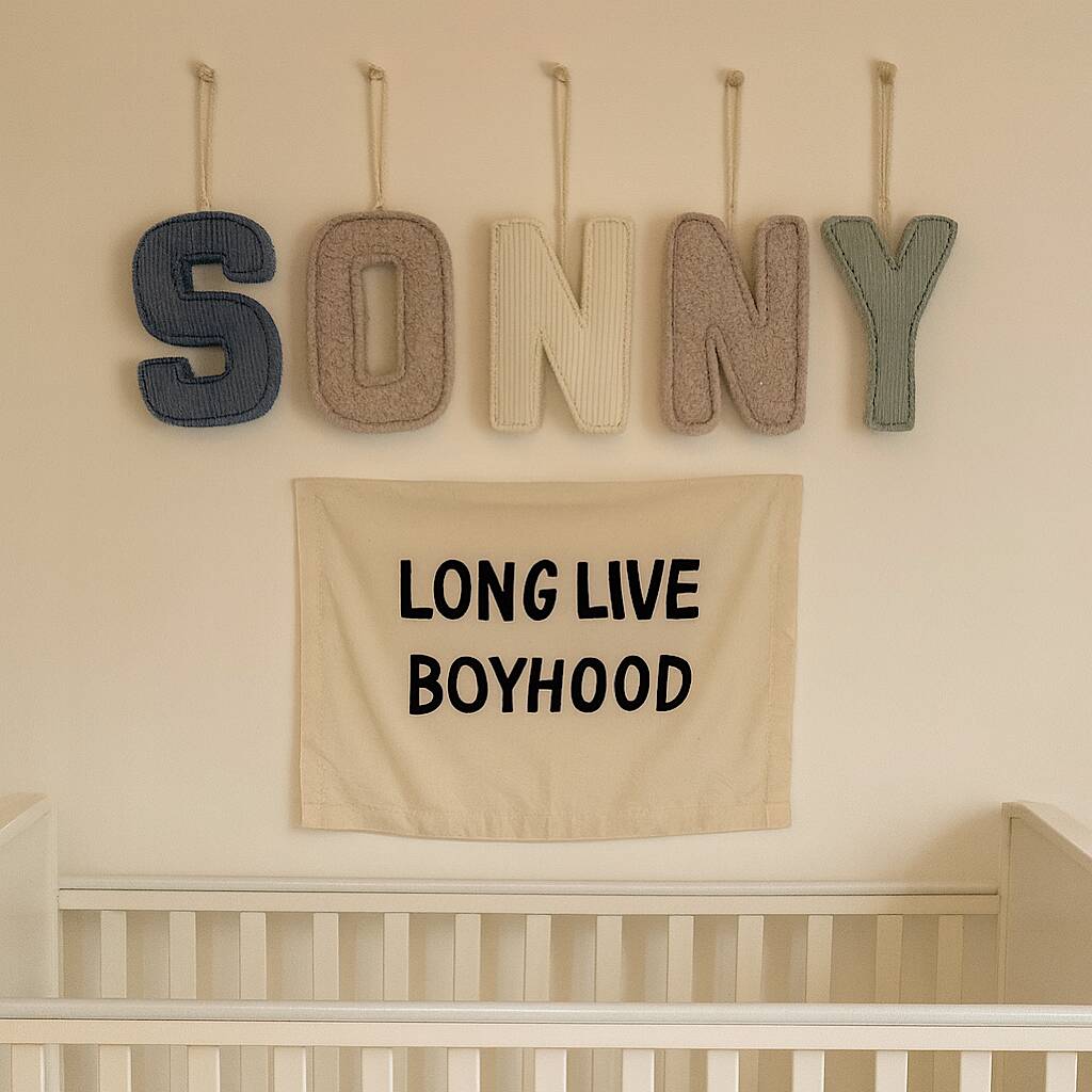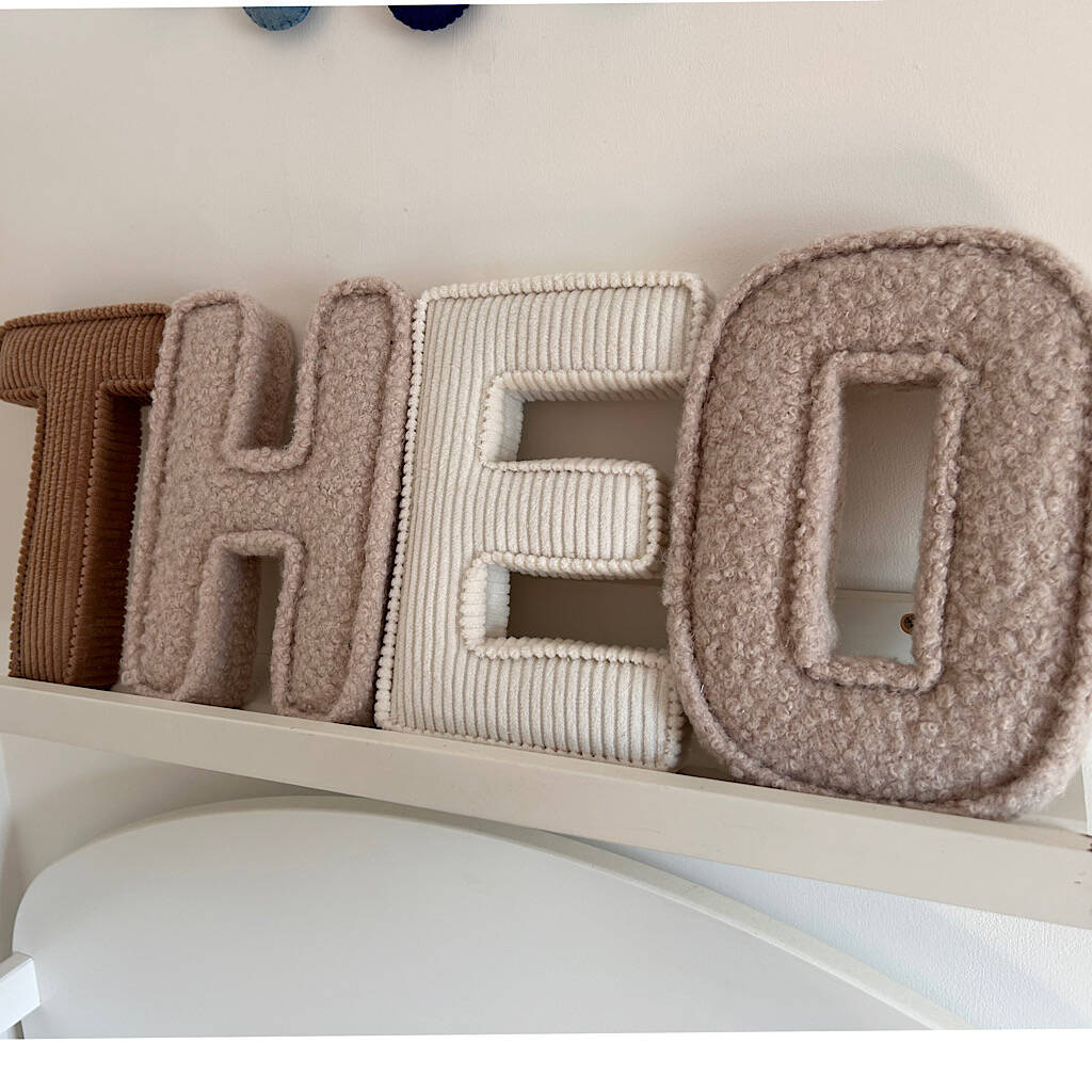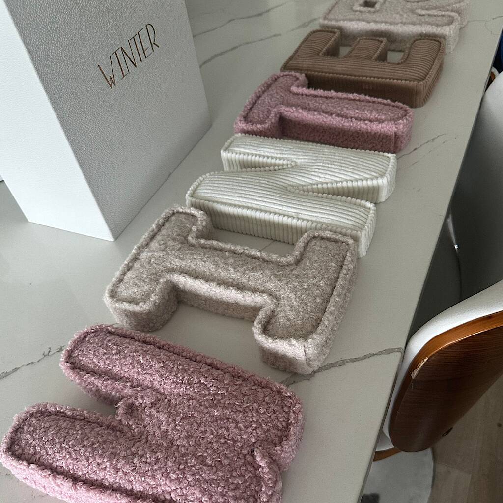 A personalised corduroy fabric letter.