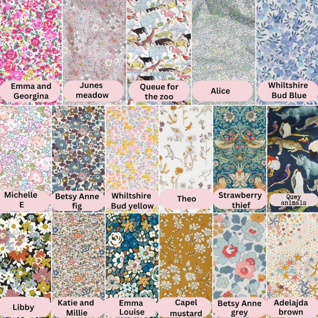 Fabrics: 14 prints to choose from.