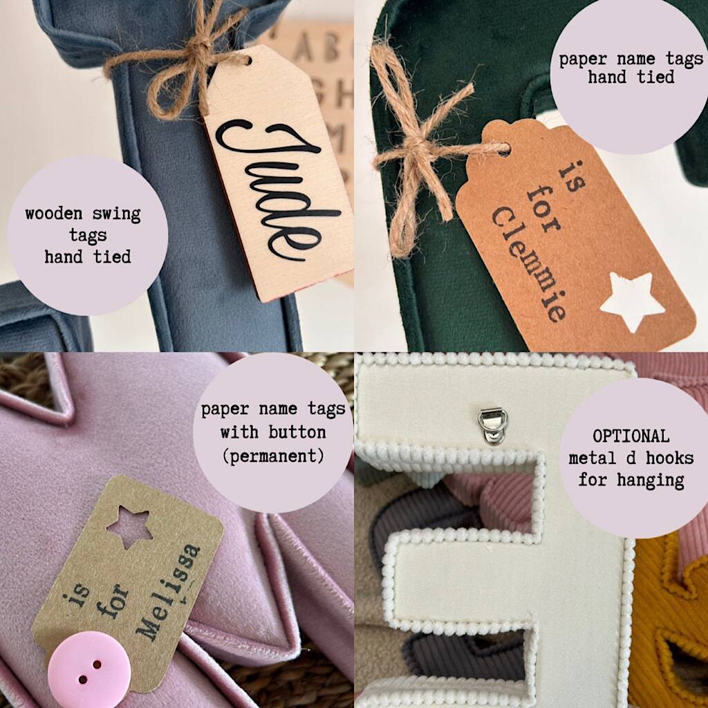 They have a hard back which means that the can be wall hung so you can hang an initial above a bed or on a door. A whole name or fun word, such as 'PLAY'or 'READ' creates a really impressive feature to a wall.