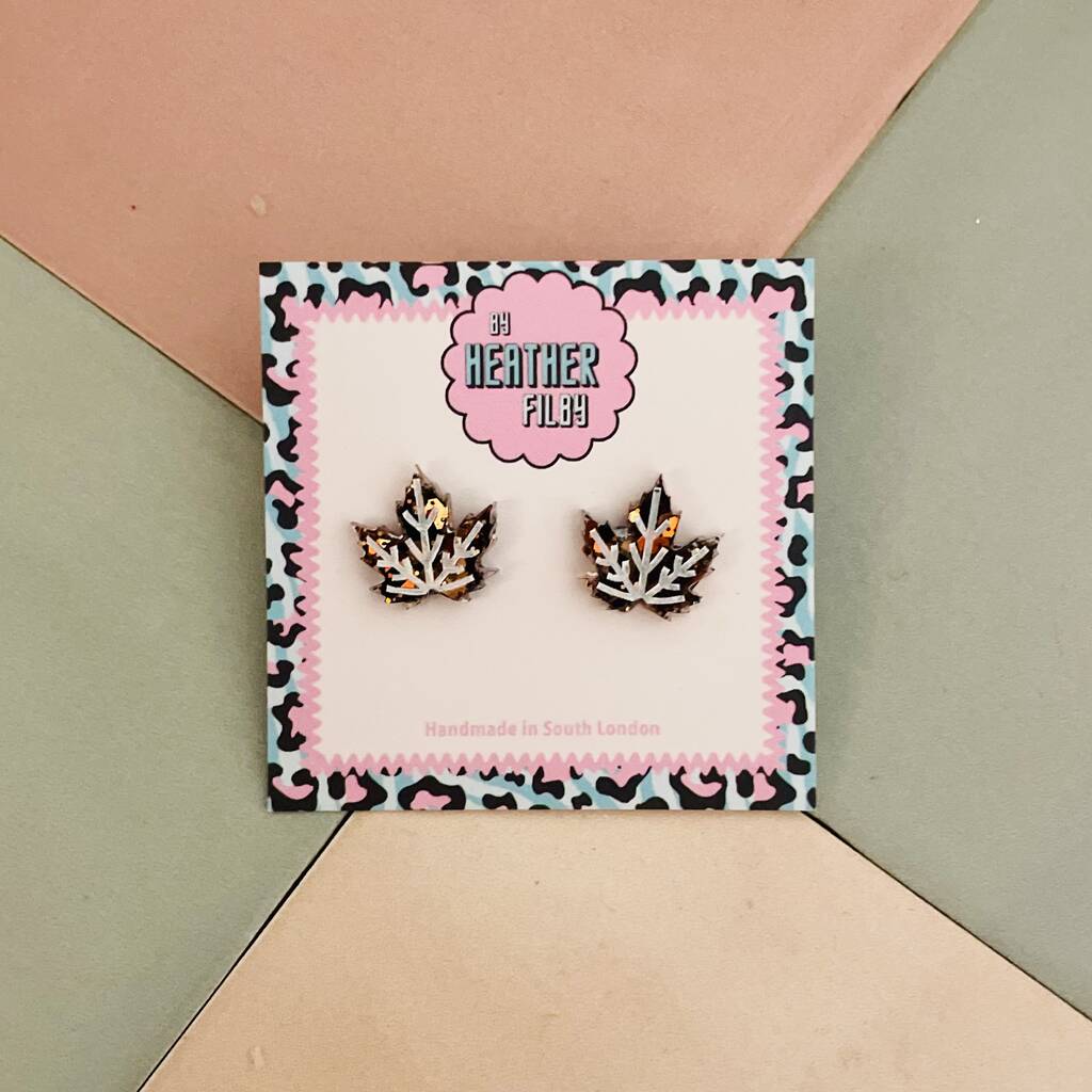 Autumn Glow Maple Leaf Glitter Resin Stud Earrings