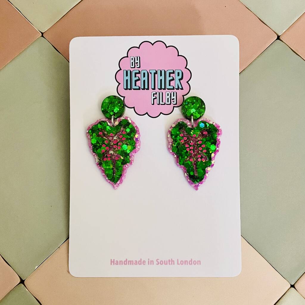 Chinese Evergreen Leaf Glitter Resin Earrings