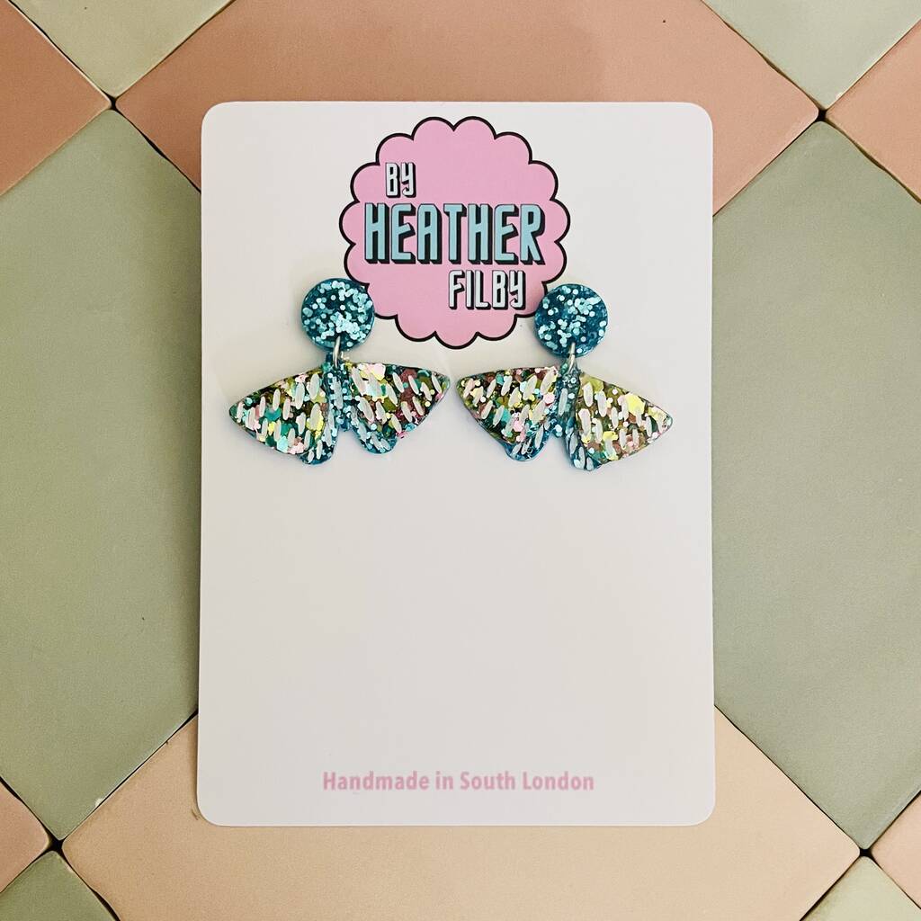 Moth Glitter Resin Earrings