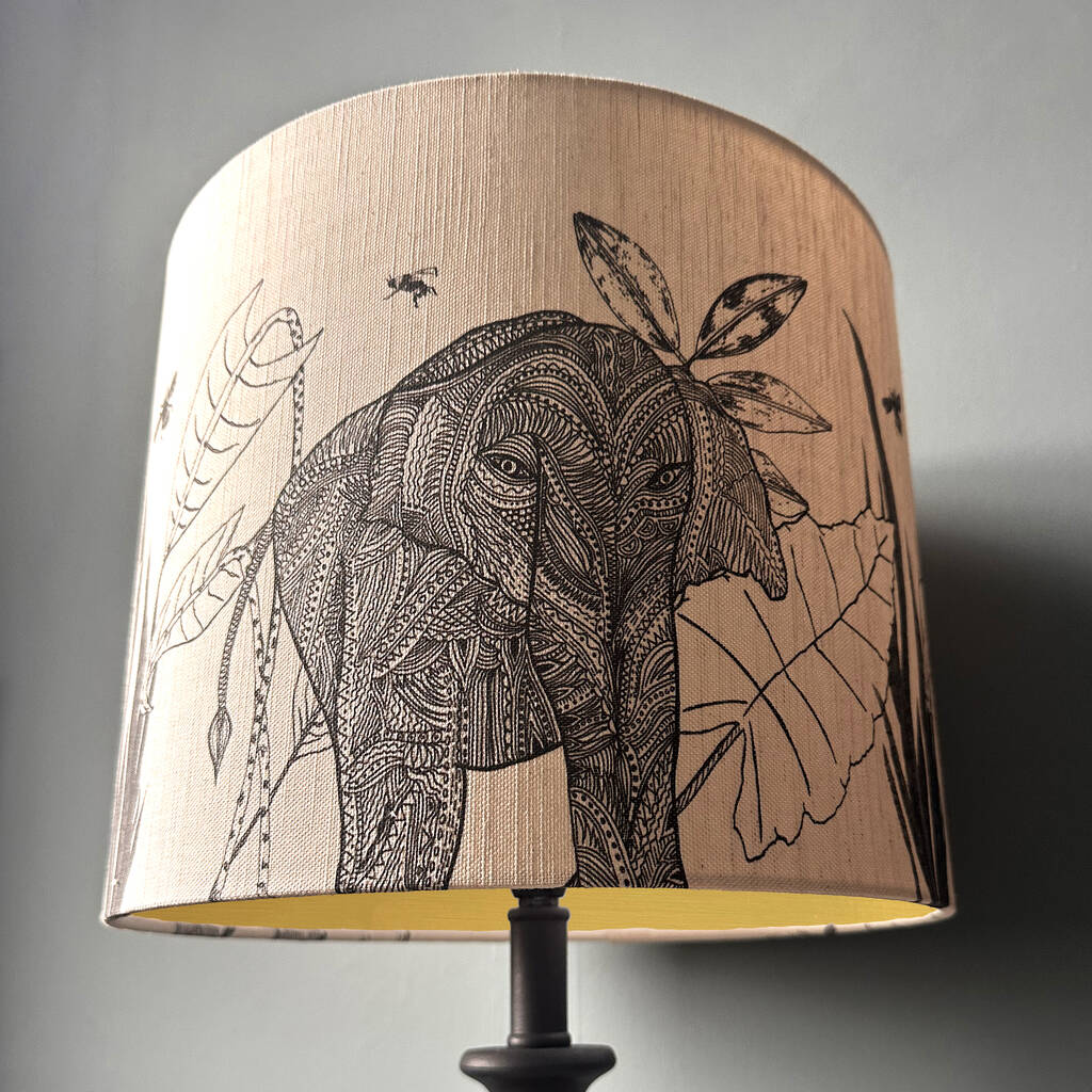 Elephant Linen Lampshade Metallic Lining
