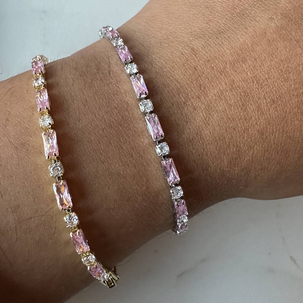 our pink tennis bracelet is the most elegant way to add pops of pink into your bracelet stack!