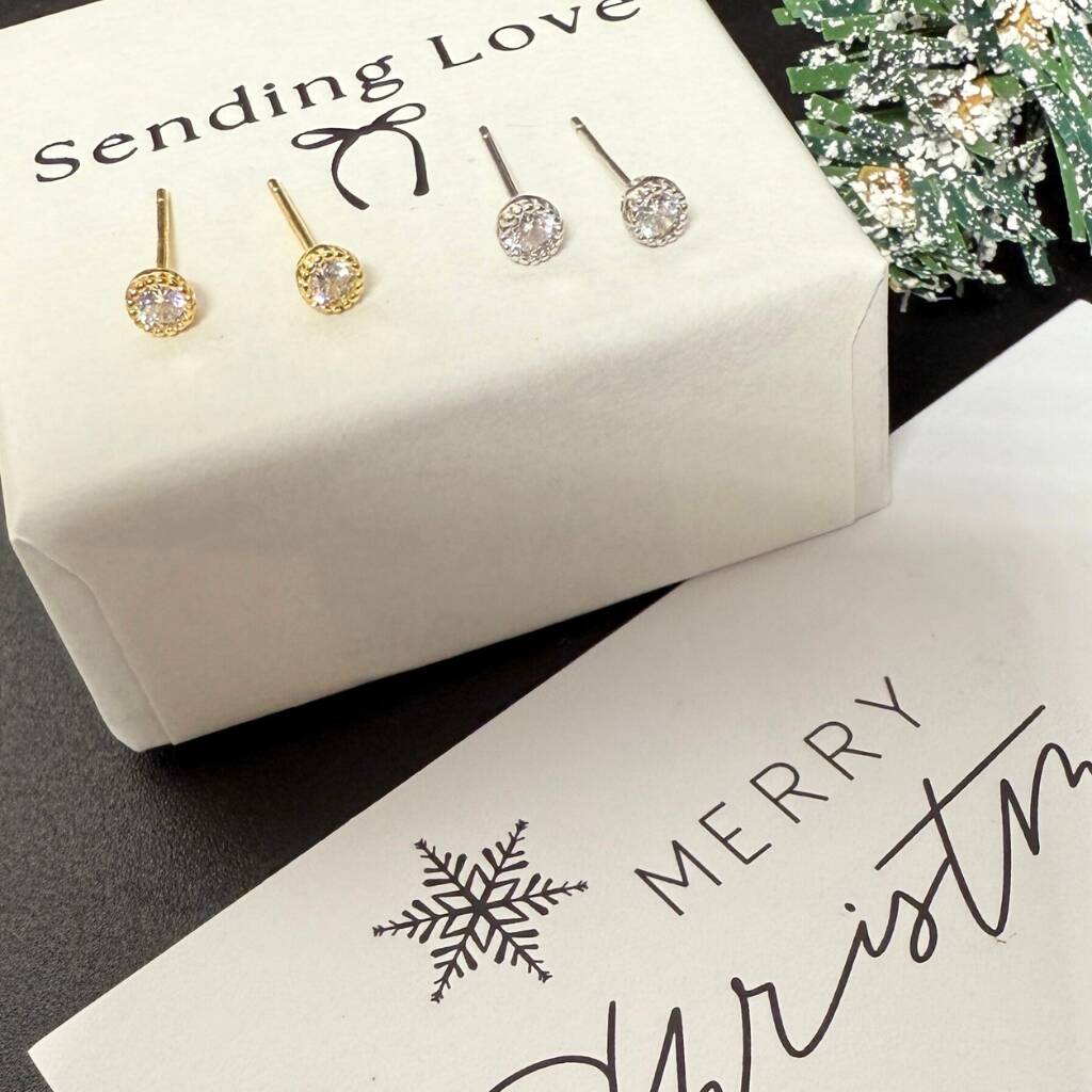 Diamond Cz Earrings Christmas Gift Set Gold And Silver
