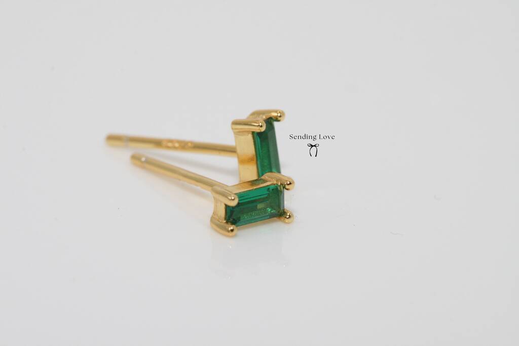 Gold Emerald Cz Stud Earrings