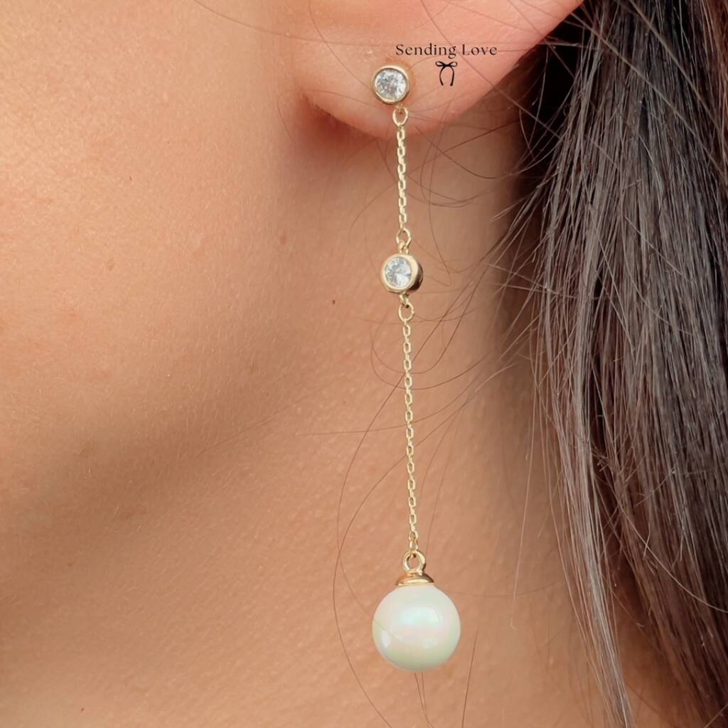 Long Dangle Pearl Bridal Earrings