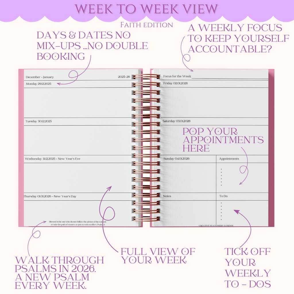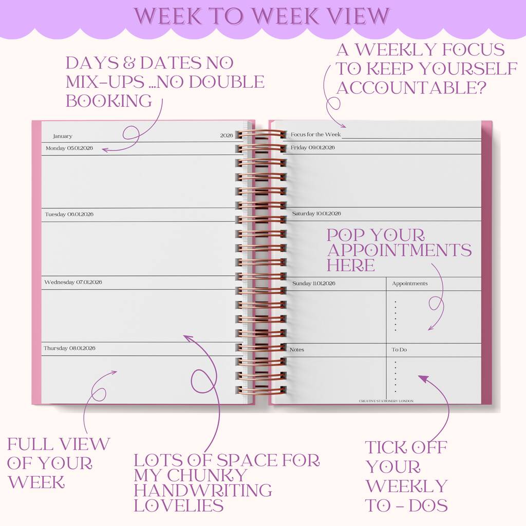 Personalised Luxury 2026 Weekly Diary| Planner| Blush Gingham
