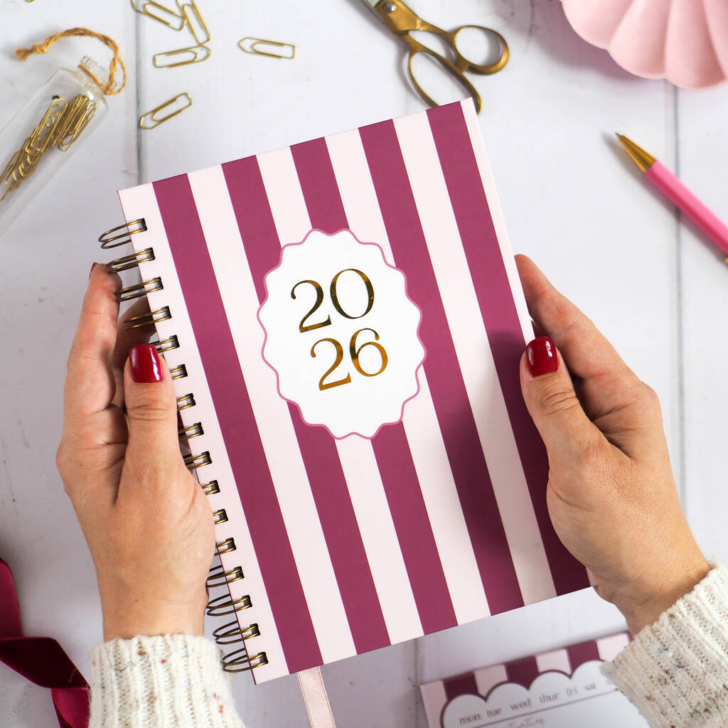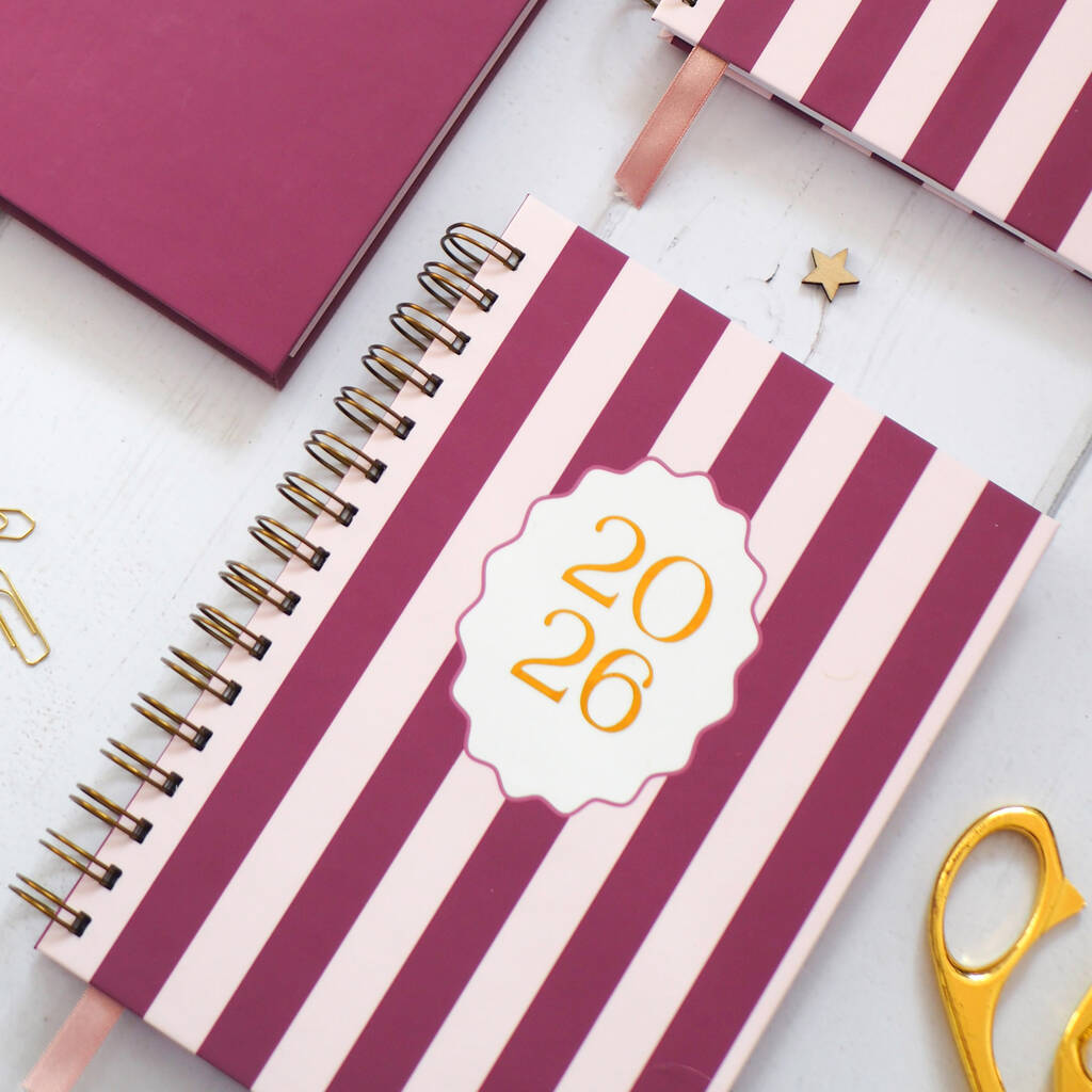 Personalised Luxury 2026 Weekly Diary| Planner| Mulberry Candy Stripe
