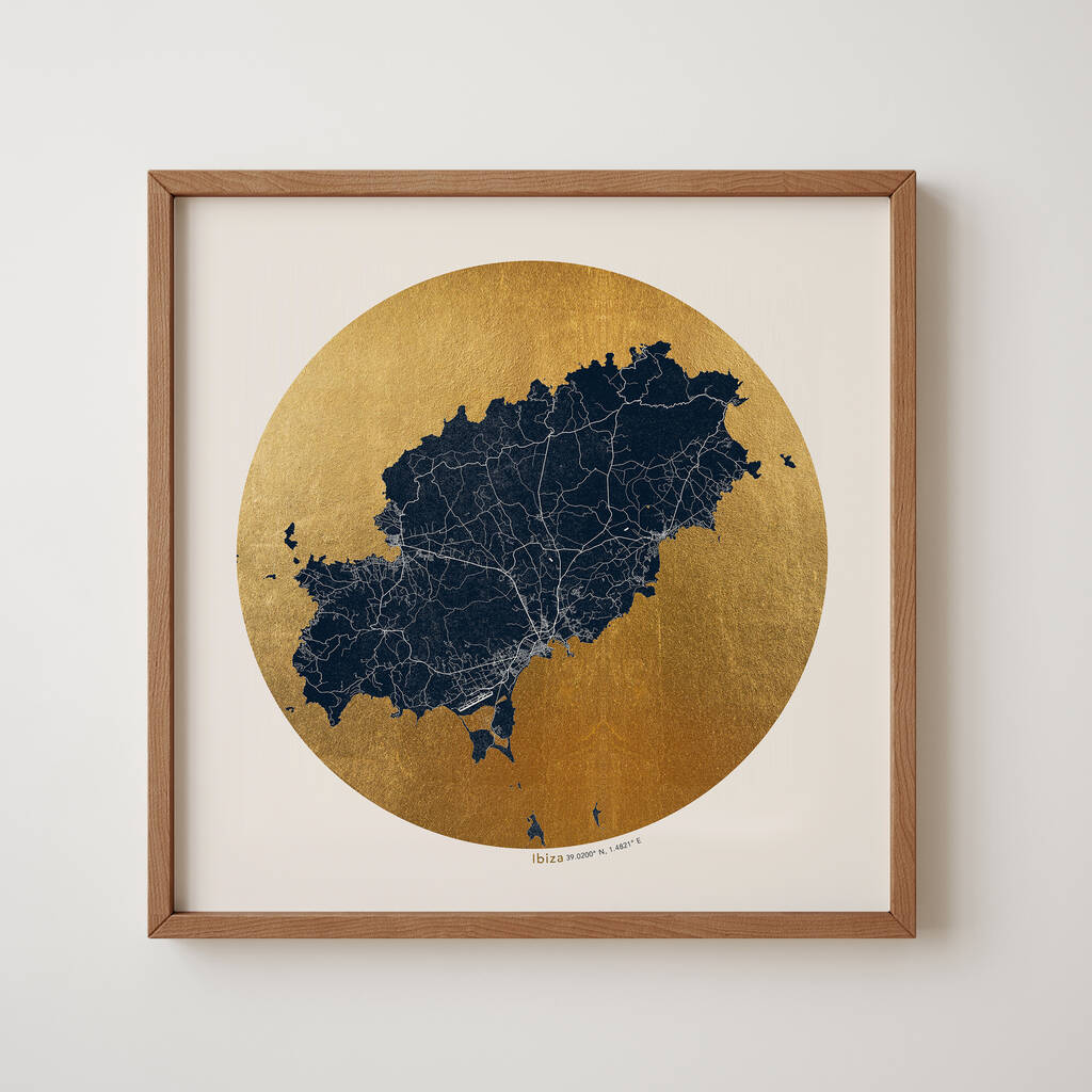 Ibiza Map Print: Gold Leaf Circular Screen Print
