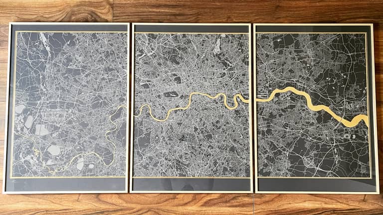 Personalised Triptych Map Prints With Metallic Leaf