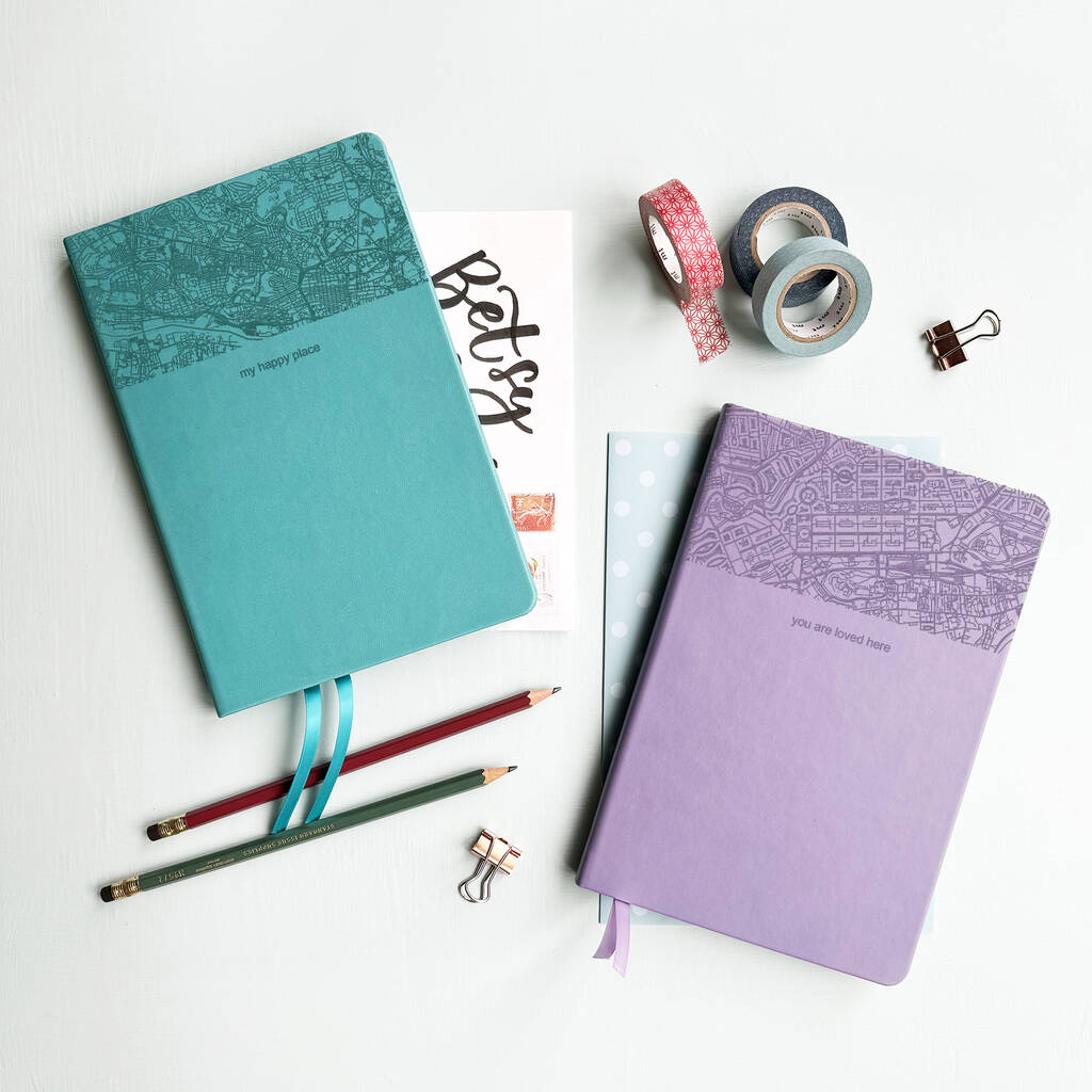 Add a line of personalised text to create a meaningful gift for any occasion. Our gorgeous personalised map notebooks make wonderful gifts for anyone moving to a new town, starting a course at a new university or graduating from one! The wonderful thing about life is that all life events have a location. Where you met, where you fell in love, your home town, your favourite holiday, all can be represented by a map.