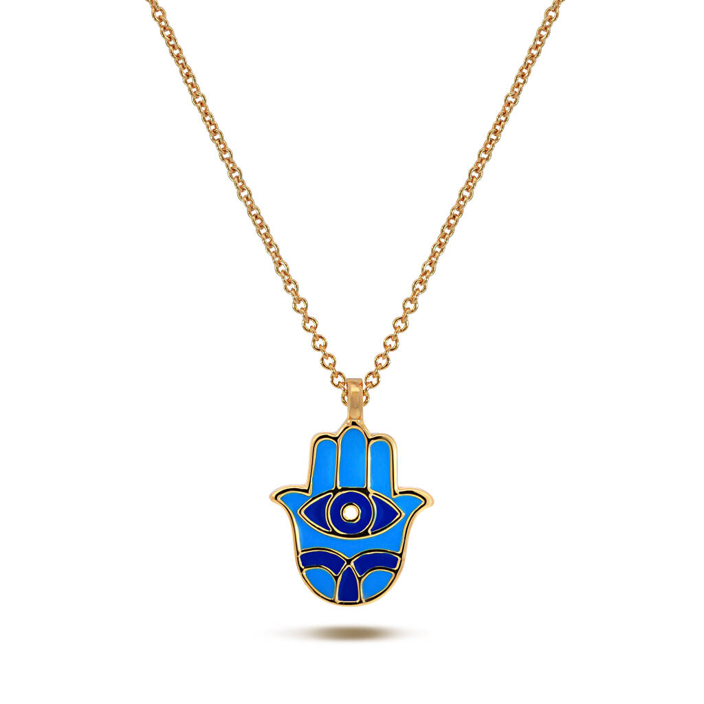 Dark Blue Hamsa Evil Eye Charm Necklace