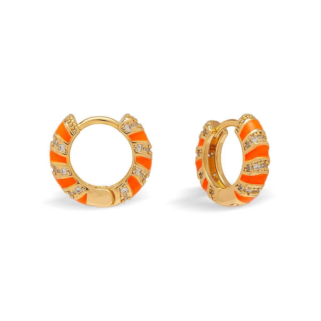 Neon Orange Twisted Cubic Zirconia Huggie Hoop Earrings