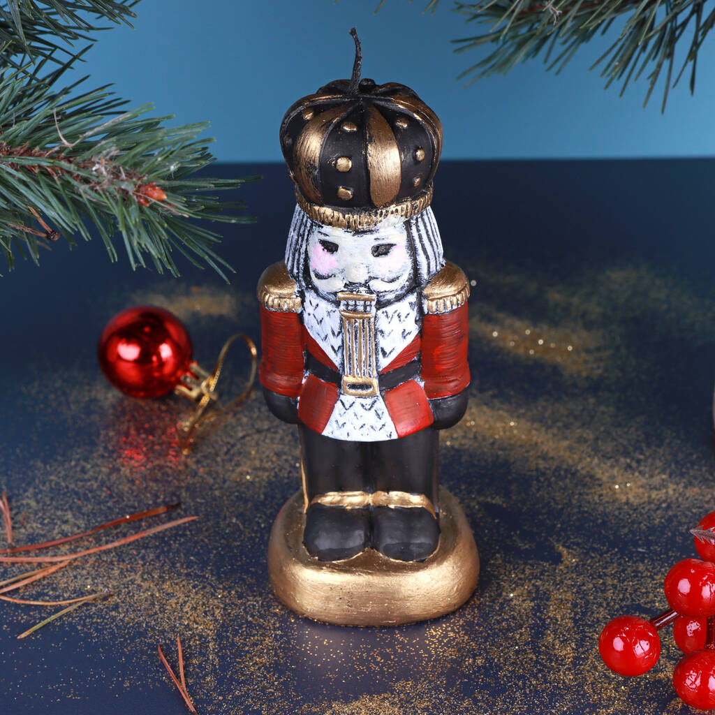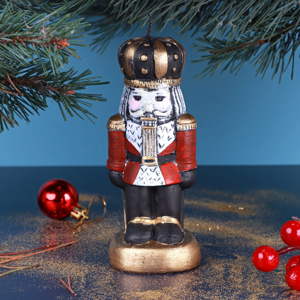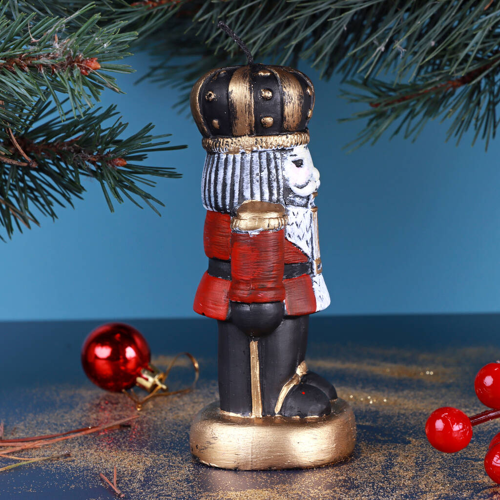 Standing proud in a bright red coat and gleaming gold crown, the Nutcracker Hand-Painted Decorative Candle is every bit the gentleman of the festive season