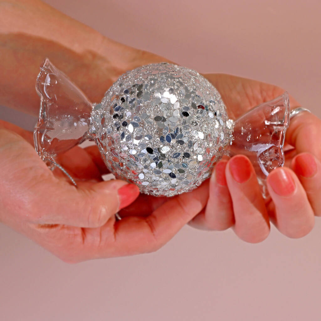 G Decor Silver Confetti Hand Finished Glass Candy Ornament Luxe Sparkle Christmas Tree Decoration