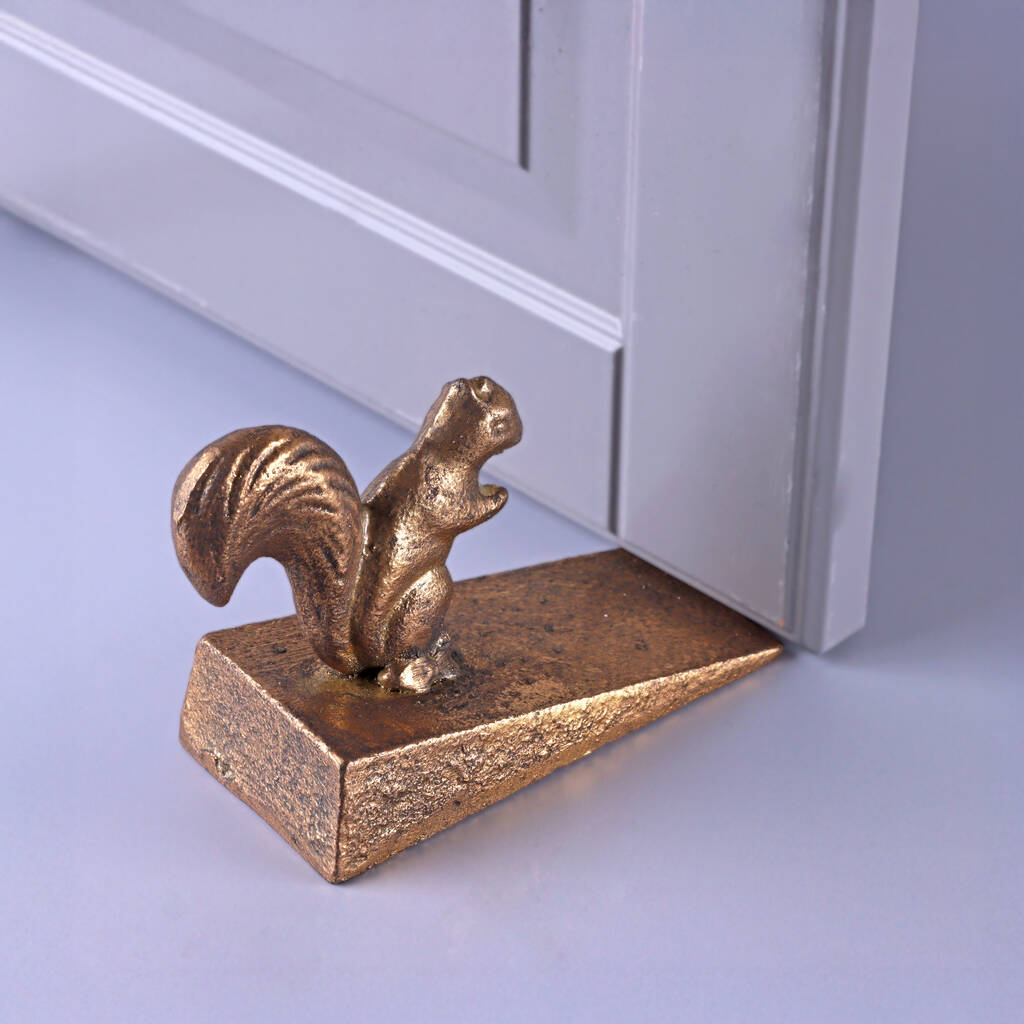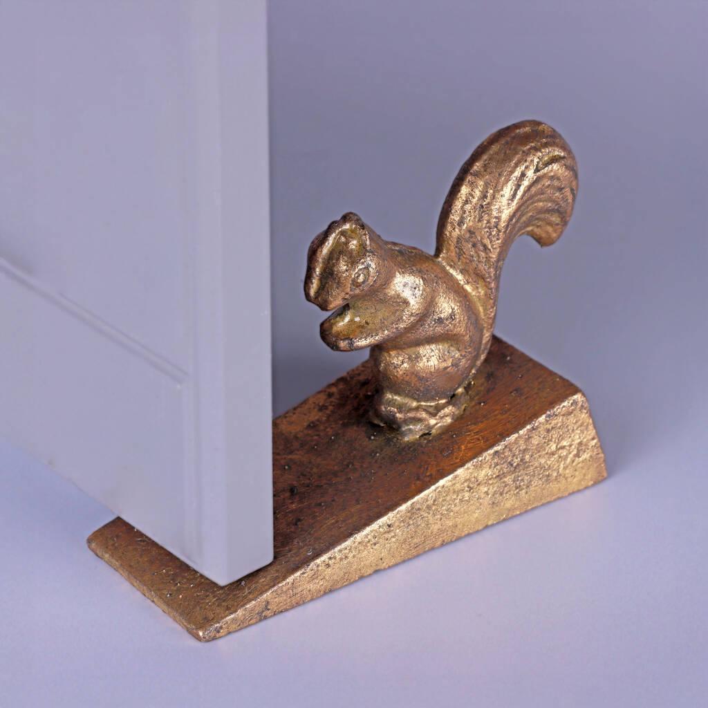 G Decor Sturdy Antique Gold Squirrel Door Stopper Decorative Woodland Door Wedge