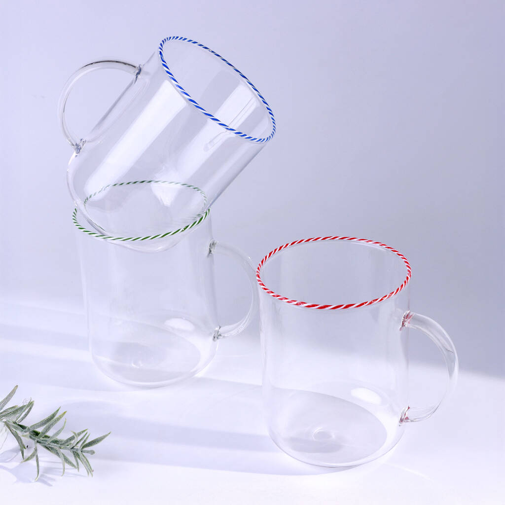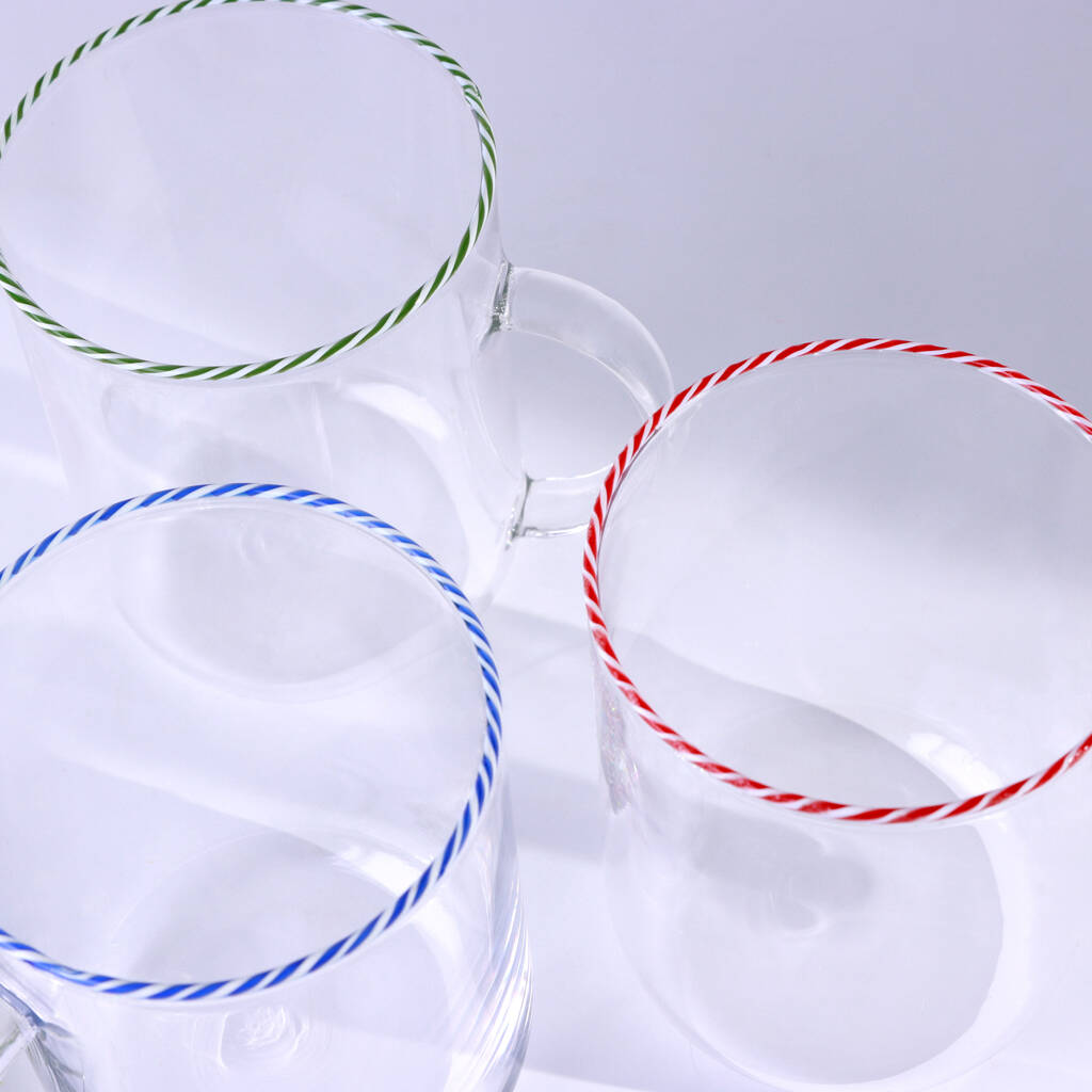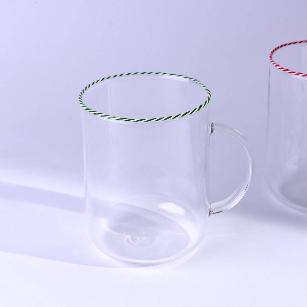 The Twist Rim Handcrafted Glassware Collection captures that balance, combining the clarity of pure glass with the gentle swirl of colour along its edge. Red, blue, and green twist rims crown each cup like a subtle ribbon, framing the drink within as though it were a work of art. Every piece begins as molten glass, shaped by skilled hands that know how to coax elegance from the smallest details. The twist is not just colour; it is movement – a graceful spiral that catches the light with every turn of the cup. In red, it brings warmth and vibrancy; in blue, a cool, coastal calm; in green, the freshness of a quiet garden. The collection invites to choose – a single hue for serene harmony, or a medley of all three for a playful, lively table. These are cups for moments, both everyday and exceptional: a morning tea enjoyed before the world awakes, a mid-afternoon coffee savoured slowly, or an iced drink on a warm evening, the condensation tracing patterns across the glass. The beauty lies in their versatility – delicate enough for special occasions, yet strong enough for daily use. And always, that twist at the rim reminding you that beauty can live in the smallest of details. Microwave safe and dishwasher safe for effortless use and care.