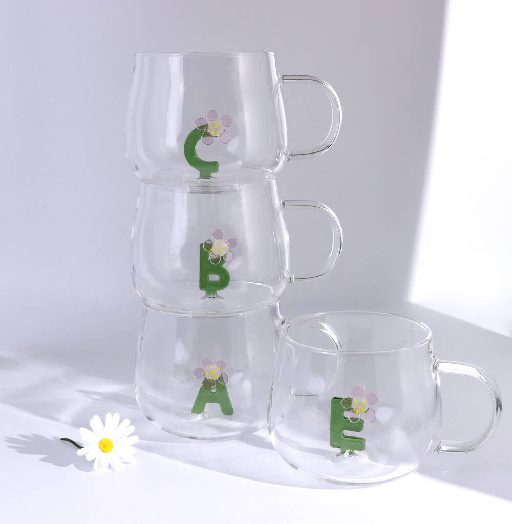 Within its crystal-clear walls sits a three-dimensional floral monogram, crafted in luminous glasswork and shaped into your chosen letter from A to Z. This is not simply decoration — it’s artistry suspended in glass, a delicate bloom paired with the beauty of personal identity. The florist-inspired design bursts with colour and life, with petals and leaves encased as if captured in a perfect moment of nature. The tactile curve of the handle, the balanced weight in a hand, and the sheer clarity of the glass delight every sip — whether it’s amorning coffee ritual or a calming evening tea. Perfect for gifting or yourself, these mugs combine personalisation, craftsmanship, and elegance in a way that makes them stand out in any collection. Each letter is meticulously shaped and positioned, creating a sense of depth and dimension that feels alive every time. Whether you choose your own initial, the first letter of someone you love, or create a full alphabet set, these mugs are destined to become cherished keepsakes. Premium Quality Meets Everyday Practicality: While each piece is crafted as a work of art, they are also made for real life — microwave safe and dishwasher safe for effortless use and care.