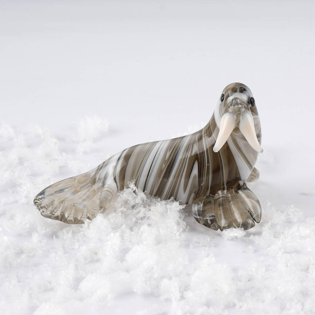Introducing our glass walrus figurine, carefully made with smooth contours and fine detailing, showcasing the walrus’s distinctive tusks, whiskered face, and rounded form in clear and softly tinted glass.