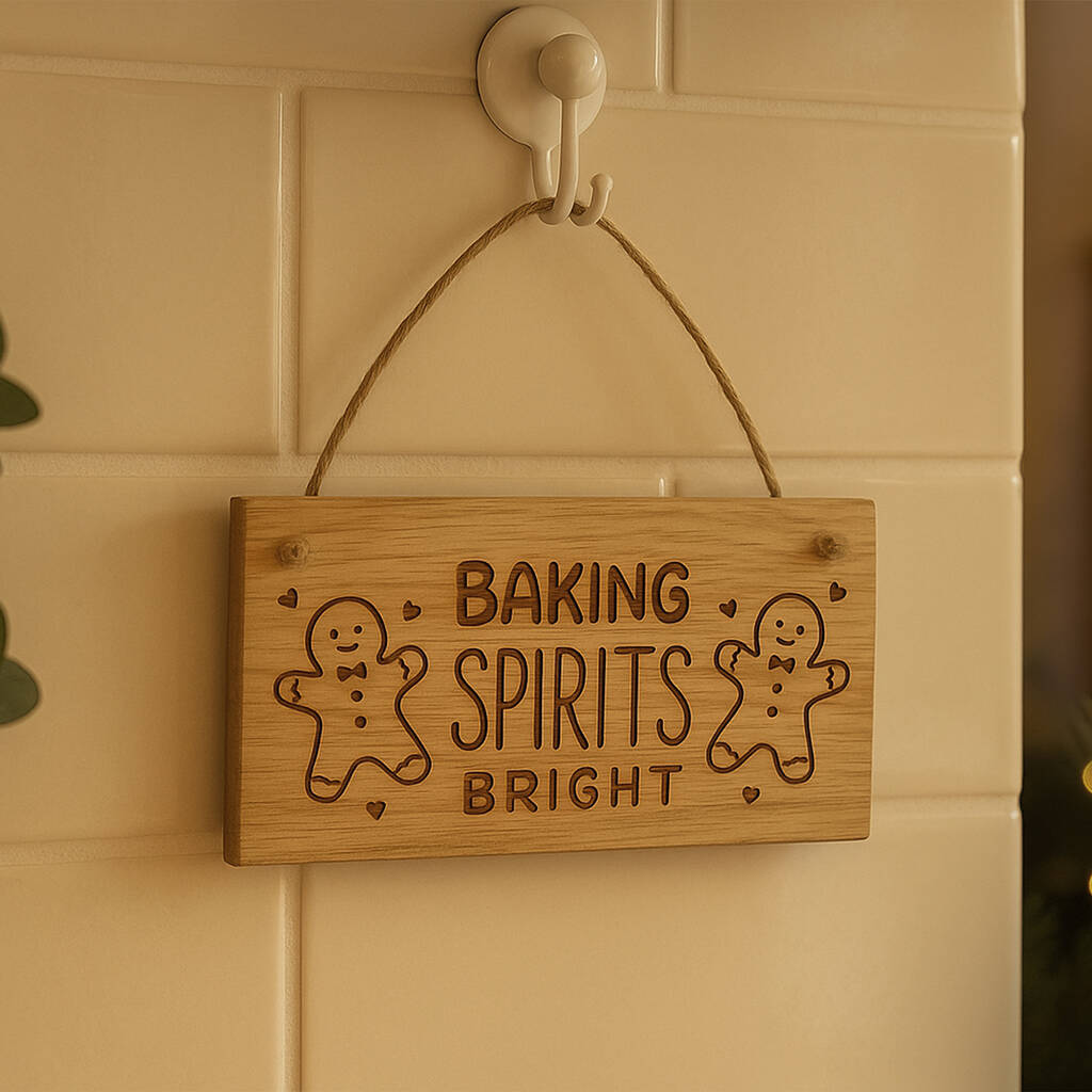 Celebrate the joy of holiday baking with this beautifully designed oak rectangular hanging plaque.