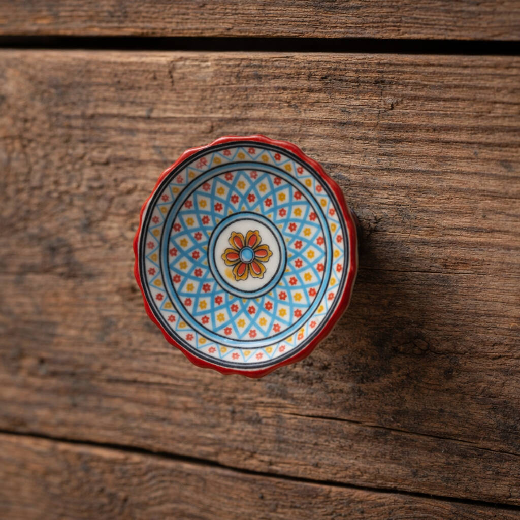 Ceramic Set Of Two Round Blue And Red Dish Drawer Pulls