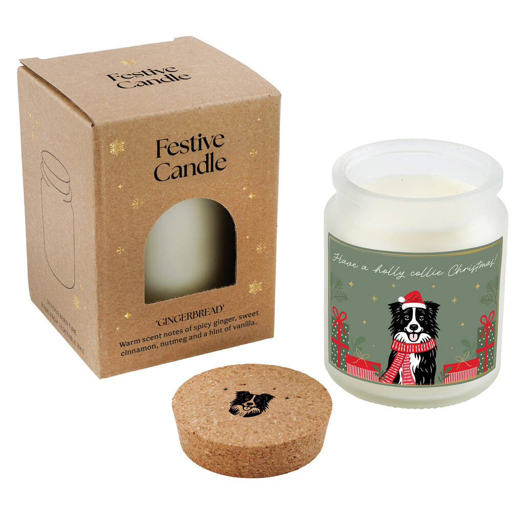 "Have a holly collie Christmas" - A joyful, pun-filled festive candle perfect for Collie lovers.