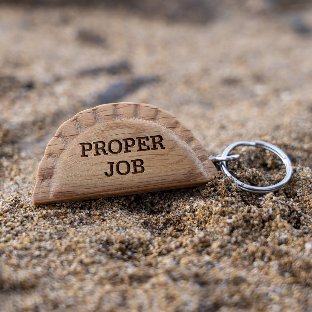 Cornish Gifts 'Proper Job' Oak Cornish Pasty Keyring