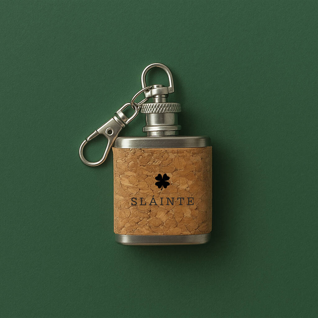 Four Leaf Clover Mini Cork Hipflask 'Slainte' | Keyring | Irish Gift | Souvenir Gift
