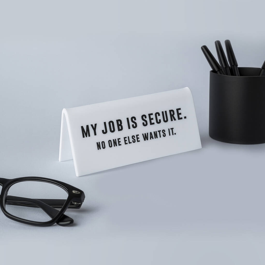 It's A Sign 'My Job Is Secure…' White Desk Sign