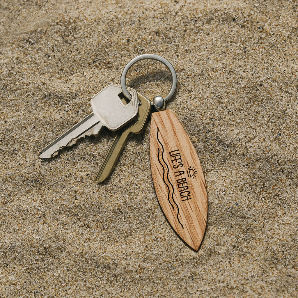 Loft 'Life's A Beach' Oak Surfboard Keyring | Birthday | Keepsake | Novelty Keyring