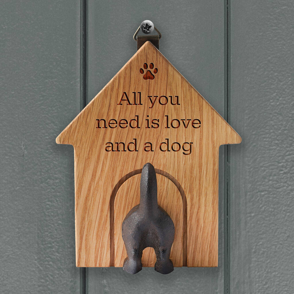 Oak Dog Hook 'All You Need Is Love And A Dog' | Pet Accessory | Homeware | Pet Room