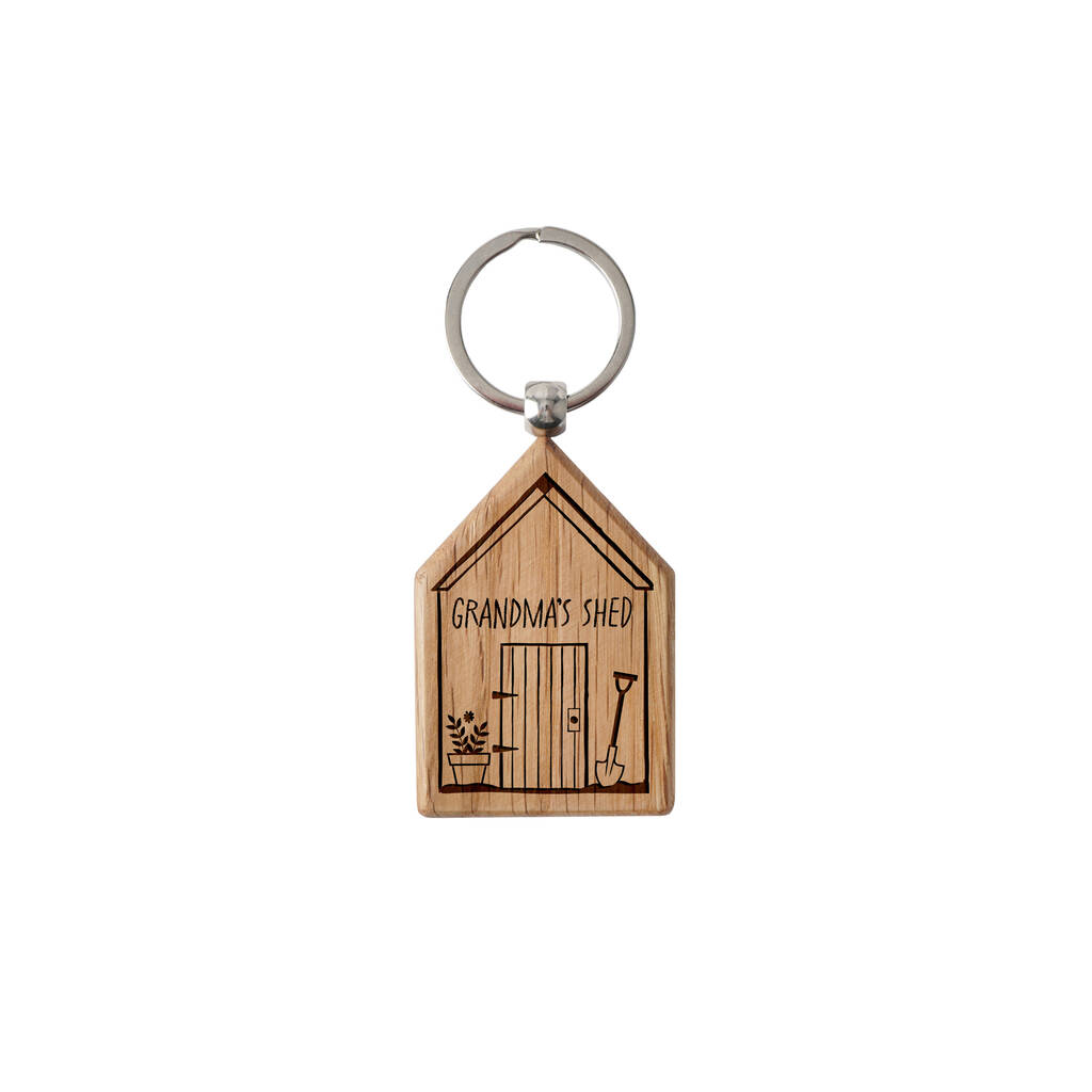 This oak keyring is shaped like a charming little house, making it a perfect way to keep shed keys safe.