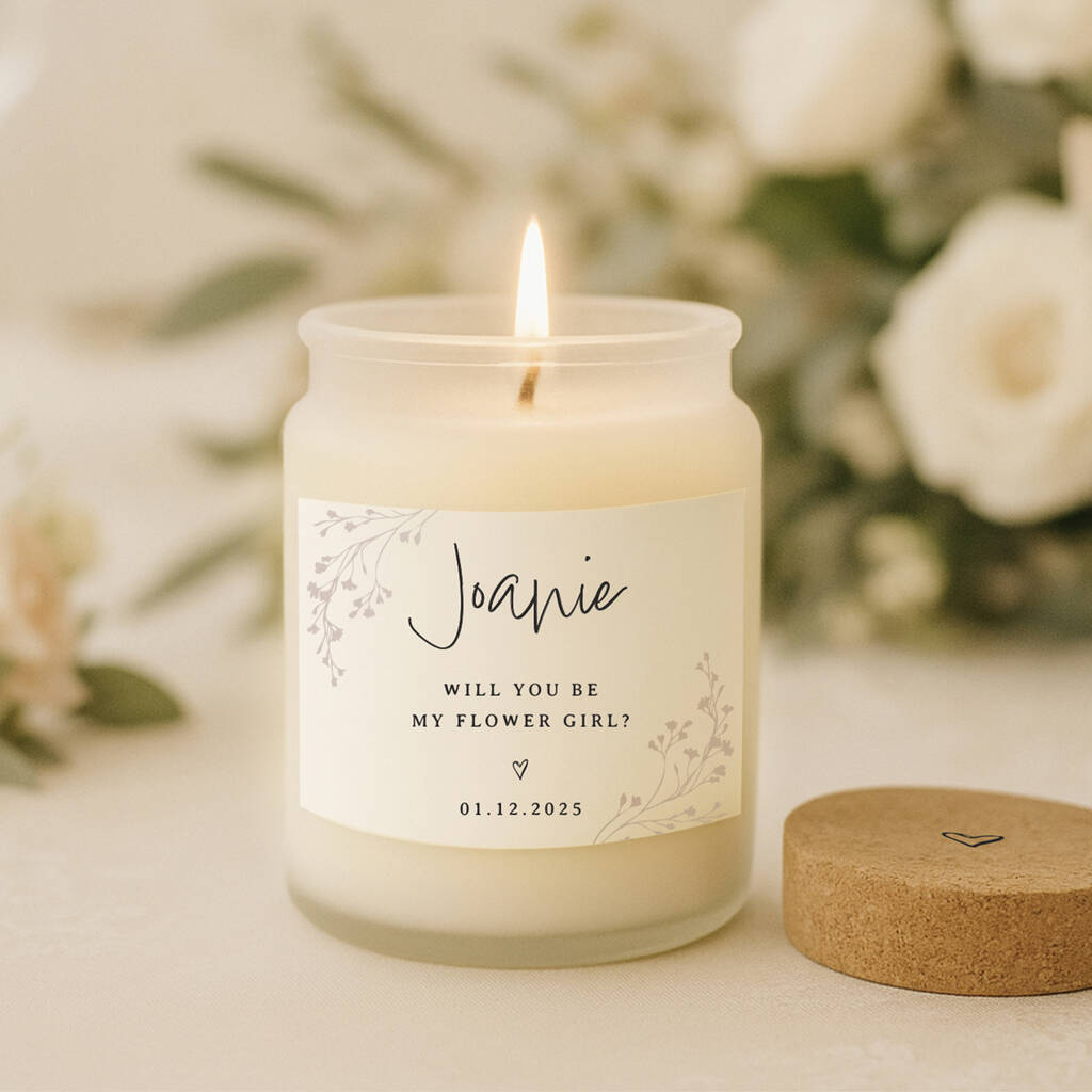 Slogan: “Will You Be My Flower Girl”. A beautiful way to ask the question and create a moment she will always remember. Personalised with her name and your special date for an extra meaningful touch.