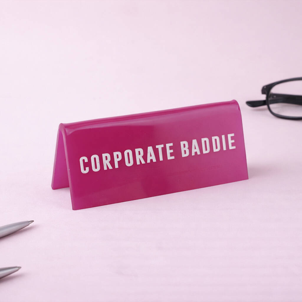 Pink Acrylic Desk Sign | ''Corporate Baddie'' | Novelty Office Gift