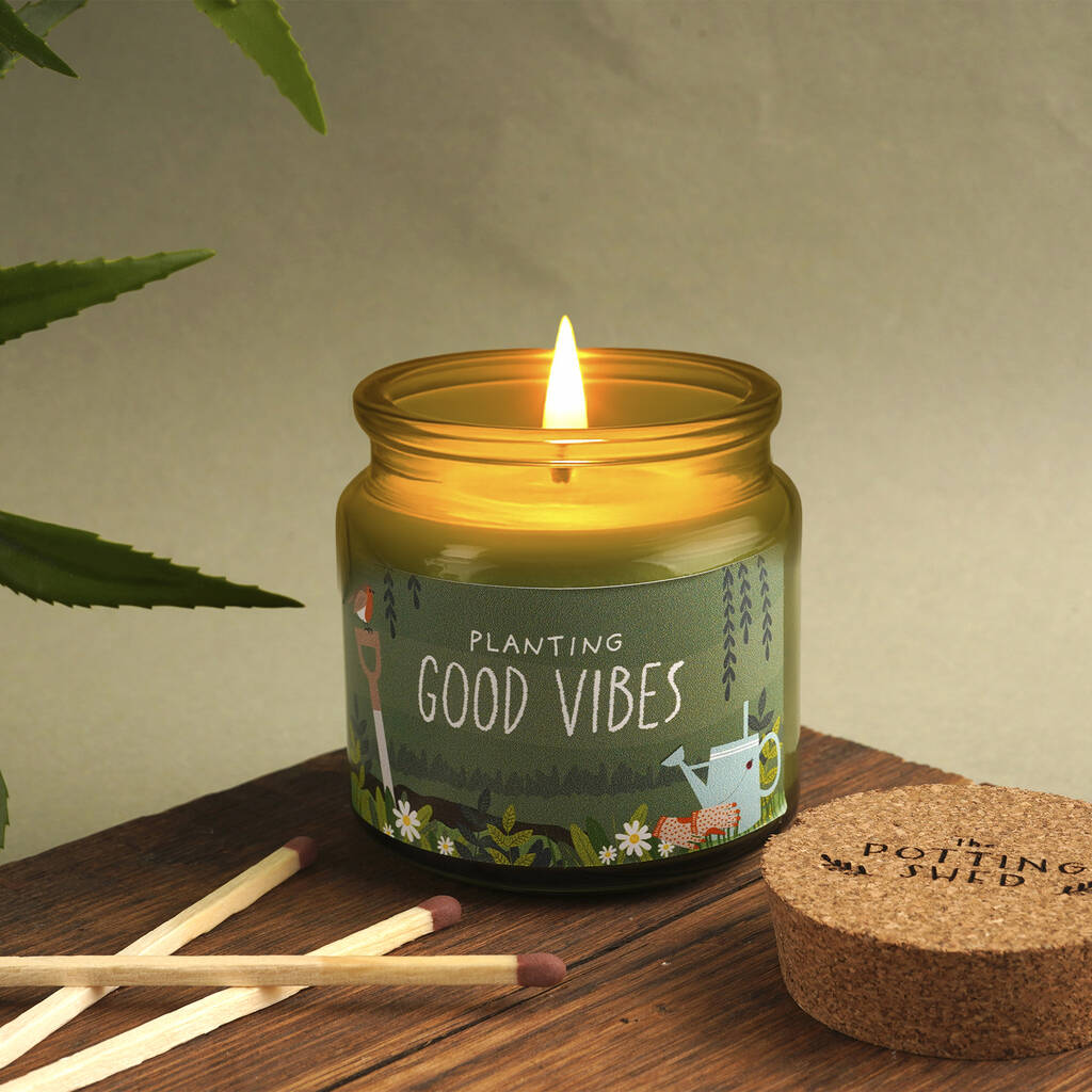 Slogan: “Planting Good Vibes”. A cheerful gardening themed candle for those with green fingers!