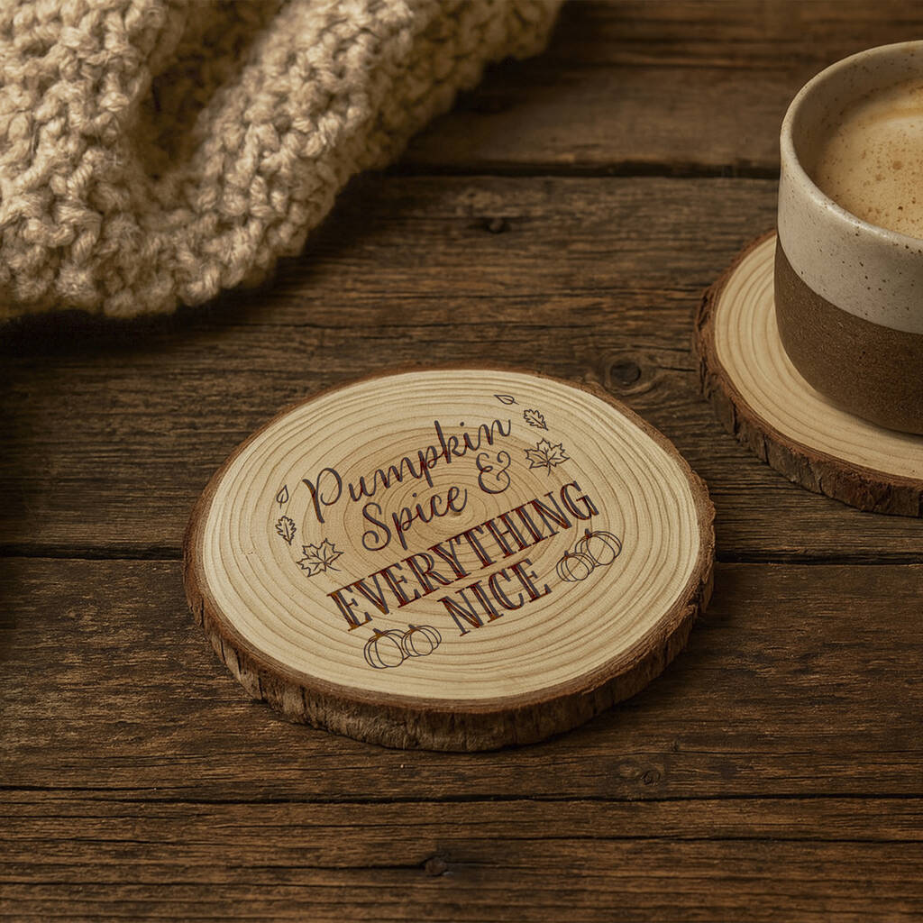 Pumpkin Spice And Everything Nice Log Coaster | Pumpkin Table Decor | Fall Drink Coaster | Cosy Autumn Kitchen Accessory | Homeware | Gift